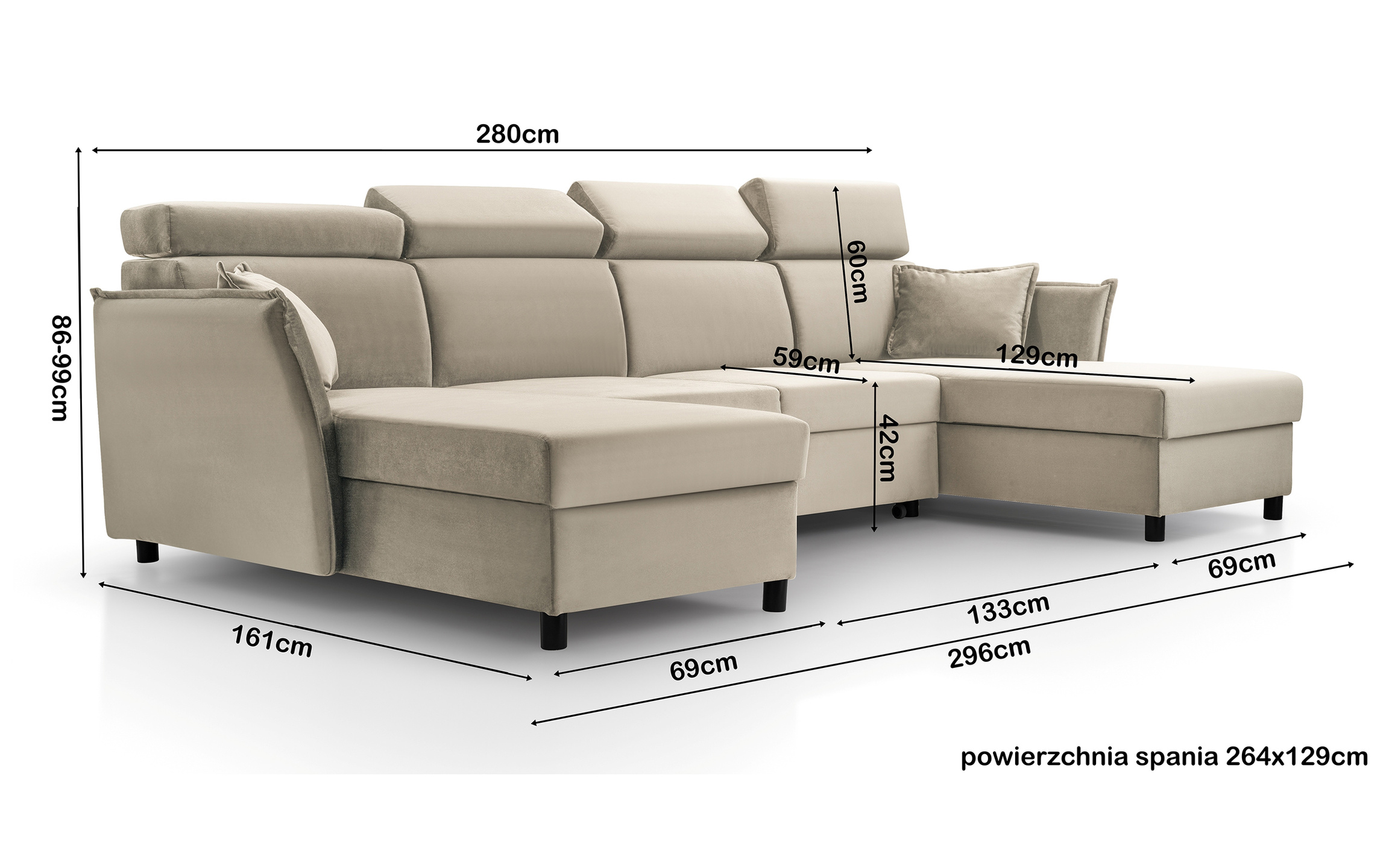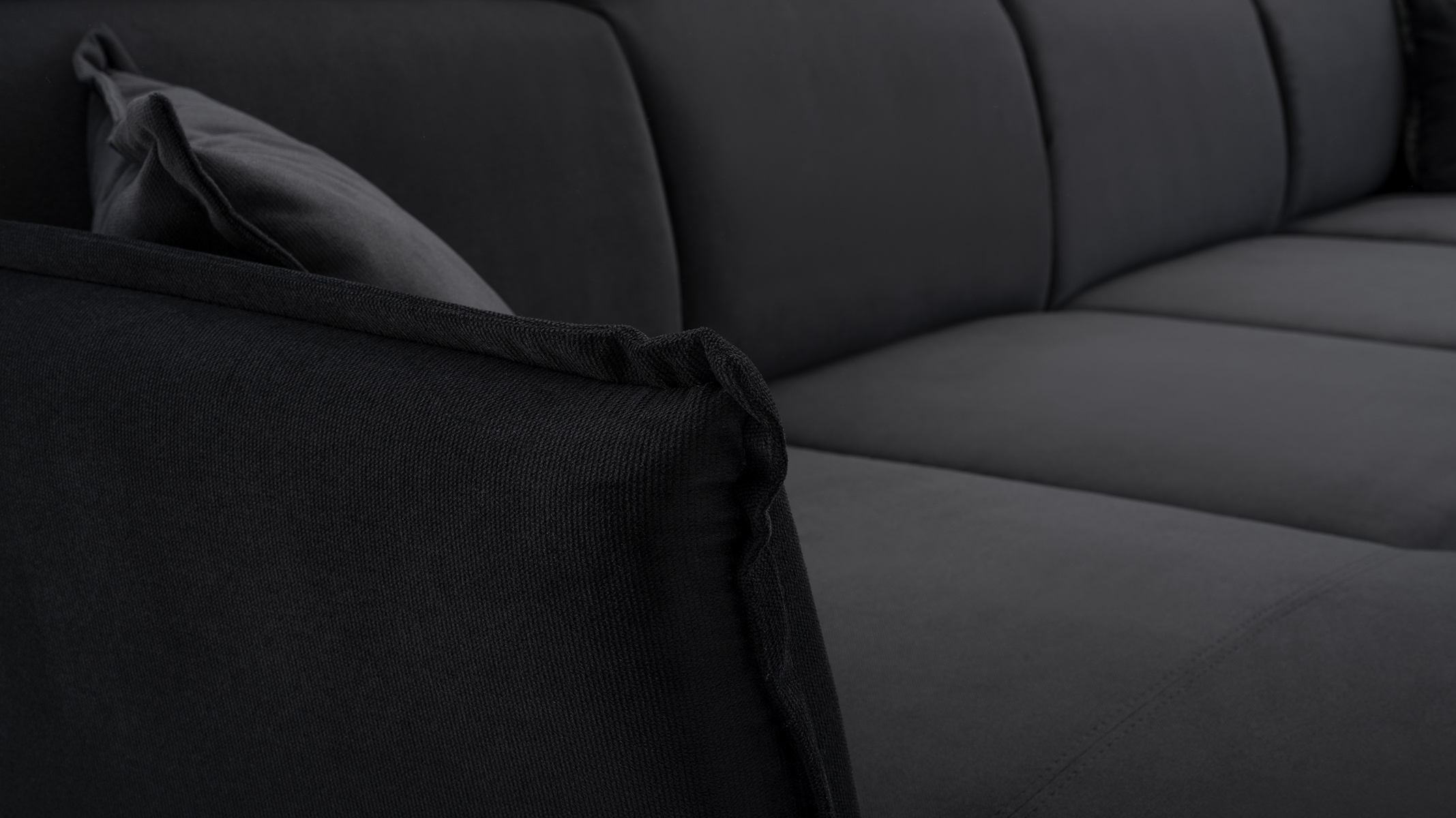 tył narożnika obity w tkaninie, więc spokojnie może stać na środku pokoju