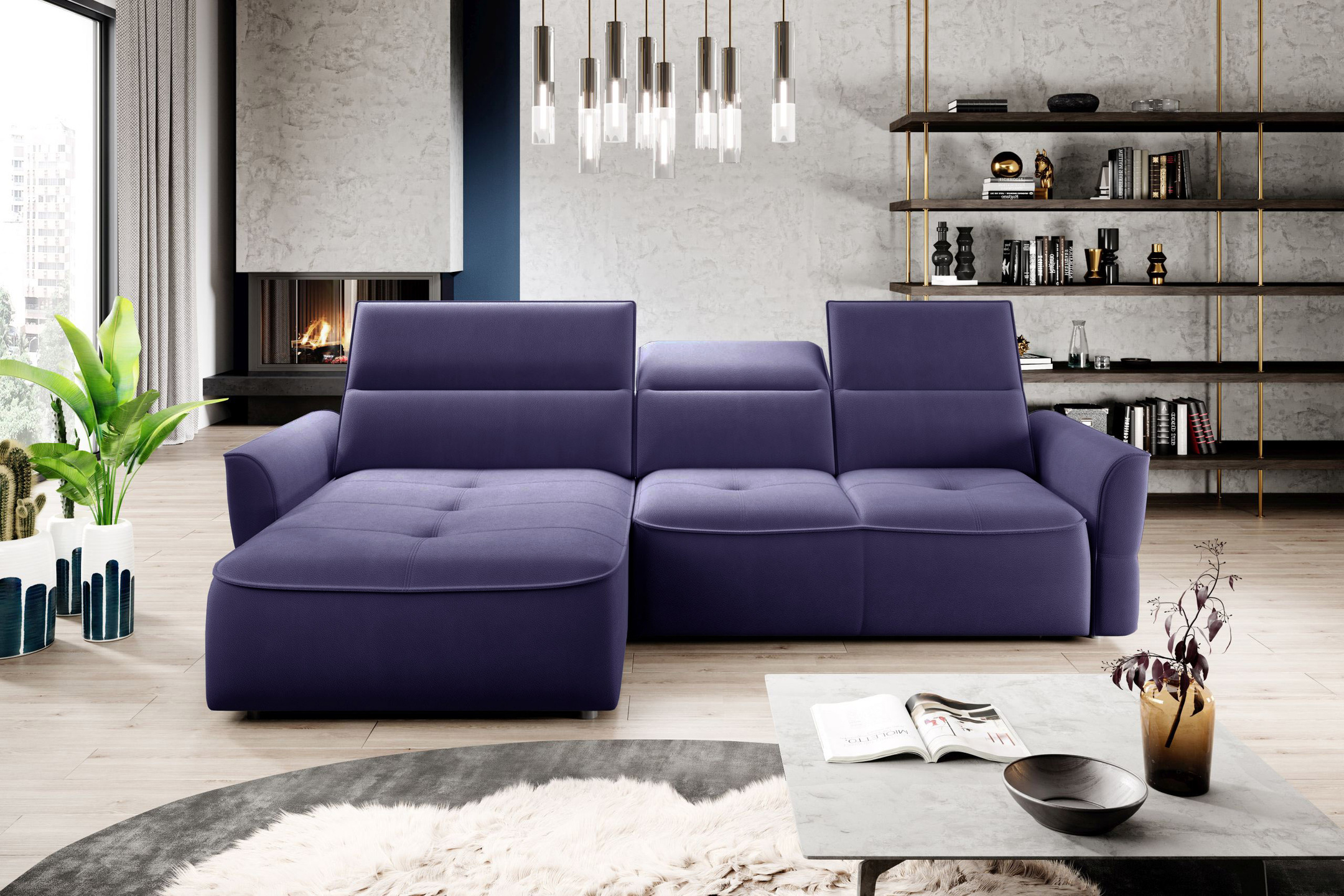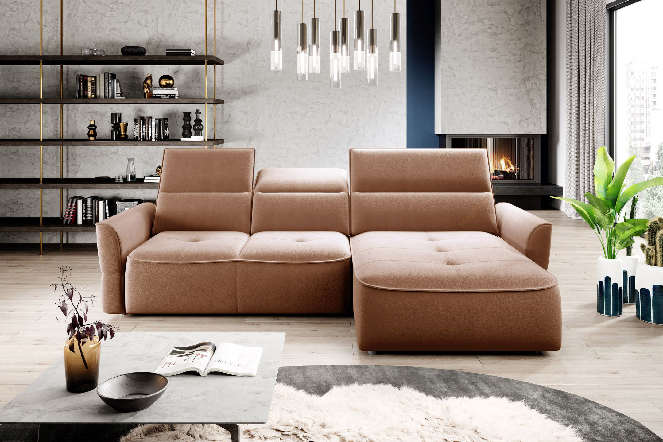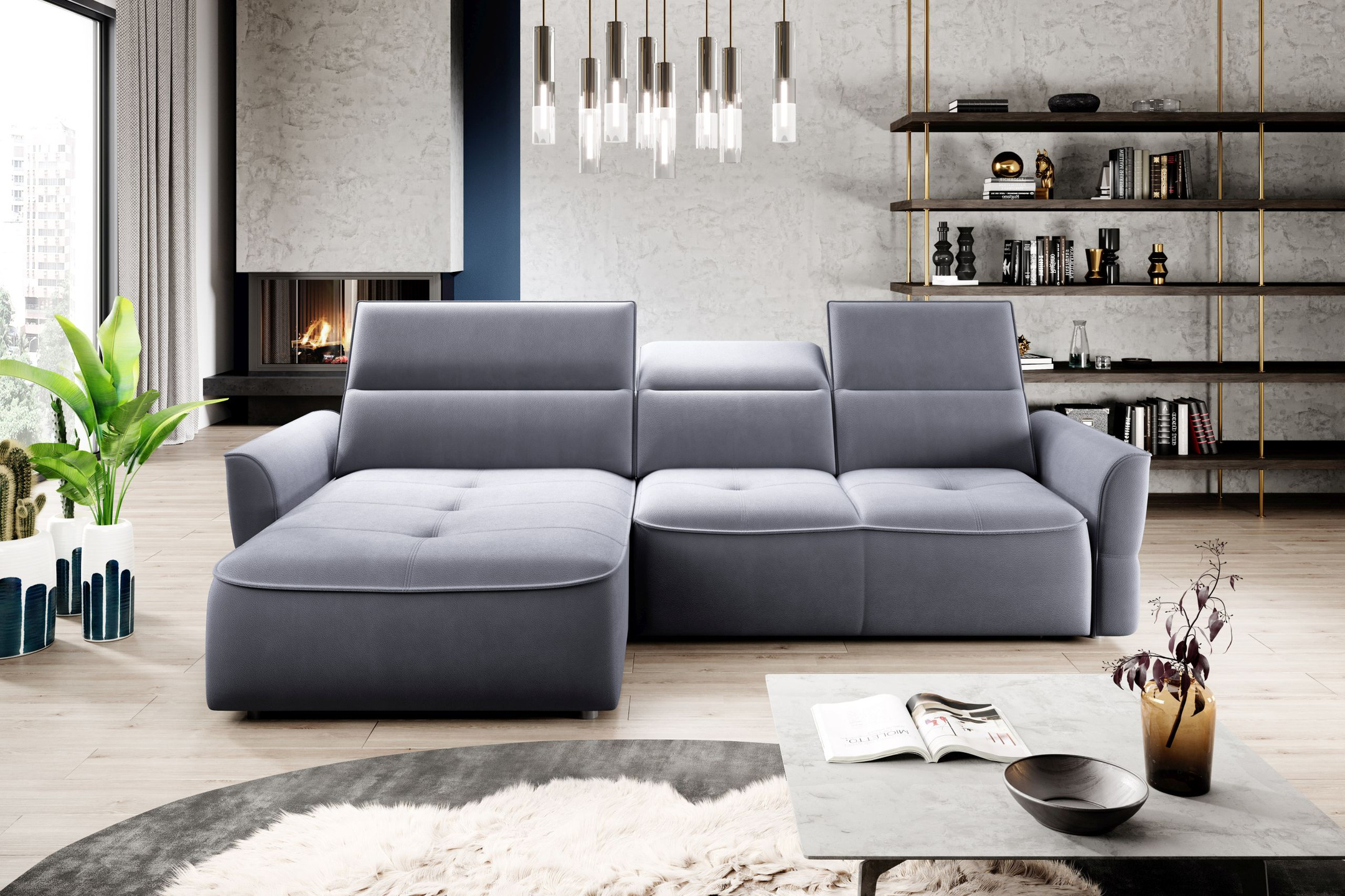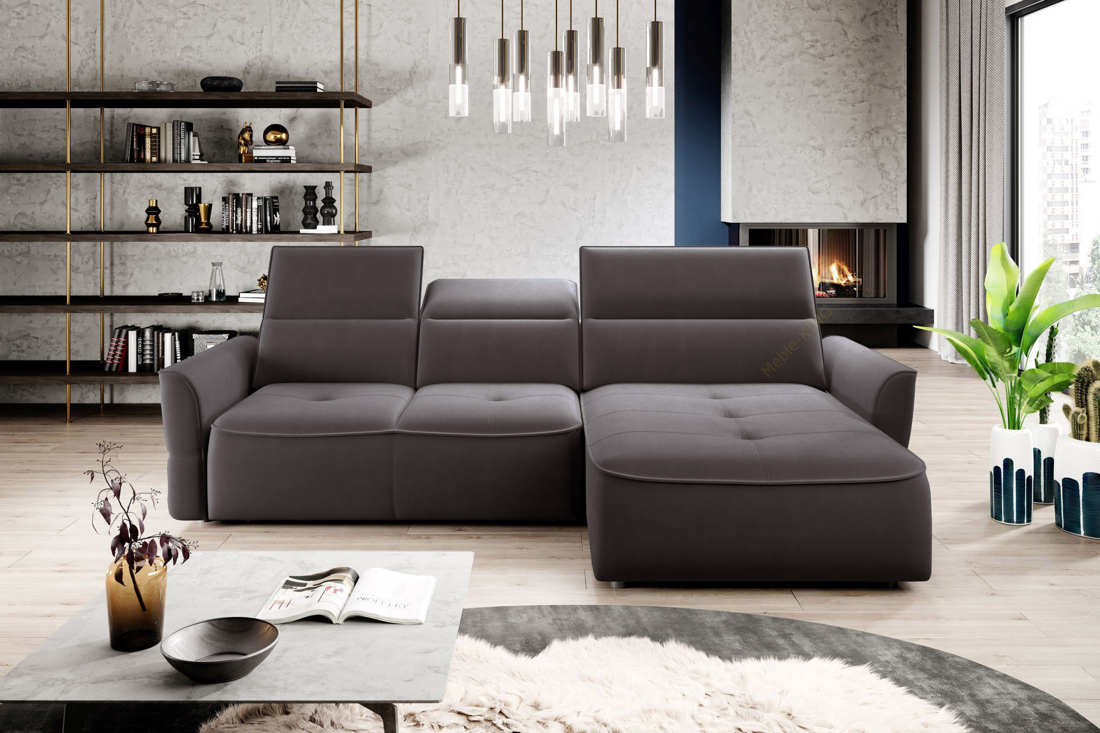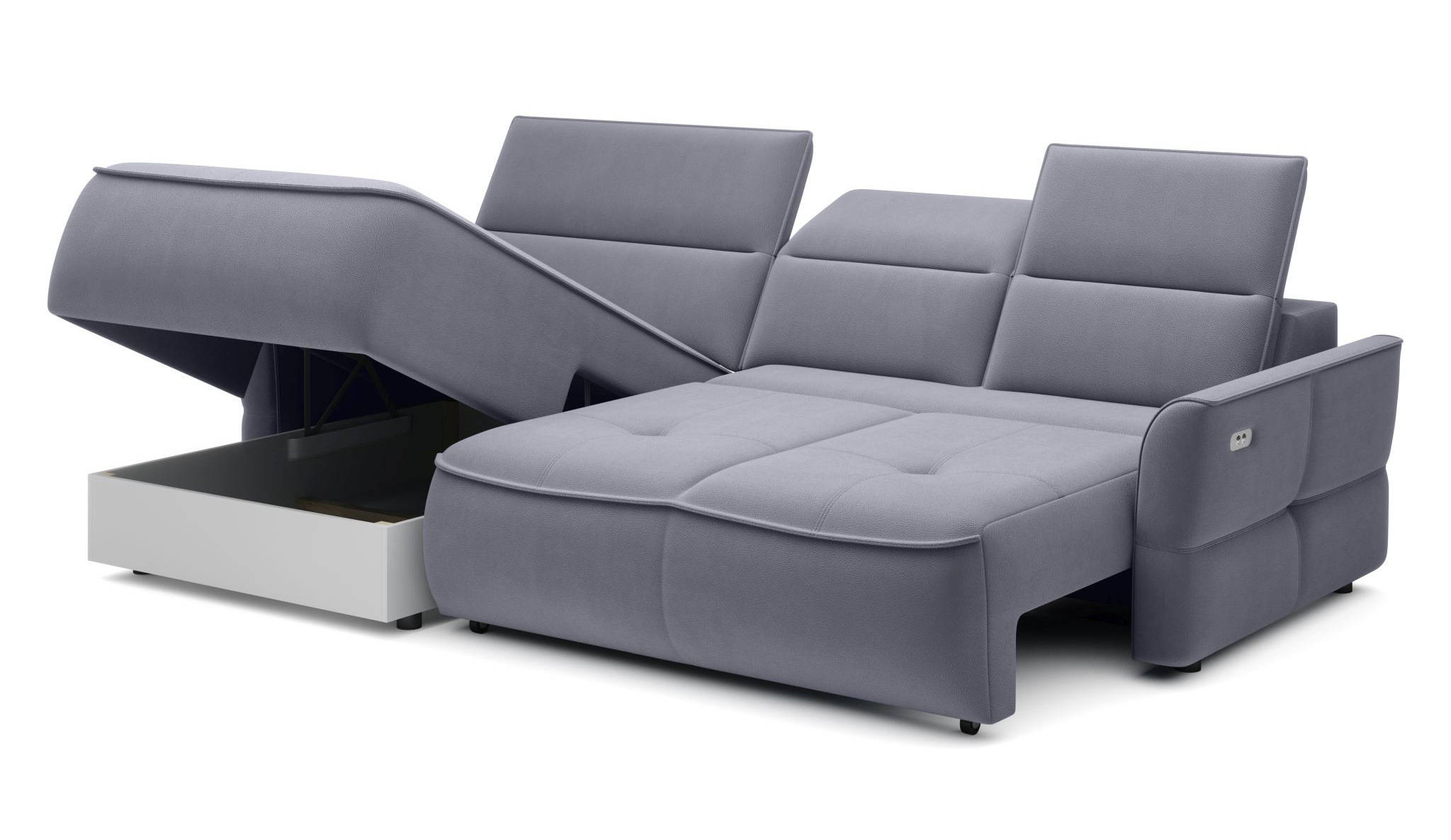 Narożnik z funkcją spania MURILLO S 260cm, Elektryczny wysuw siedziska, Zagłówki