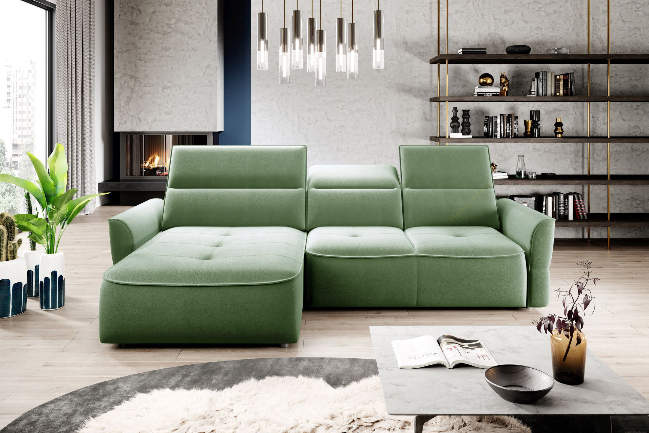 • tył narożnika obity w tkaninie, więc spokojnie może stać na środku pokoju