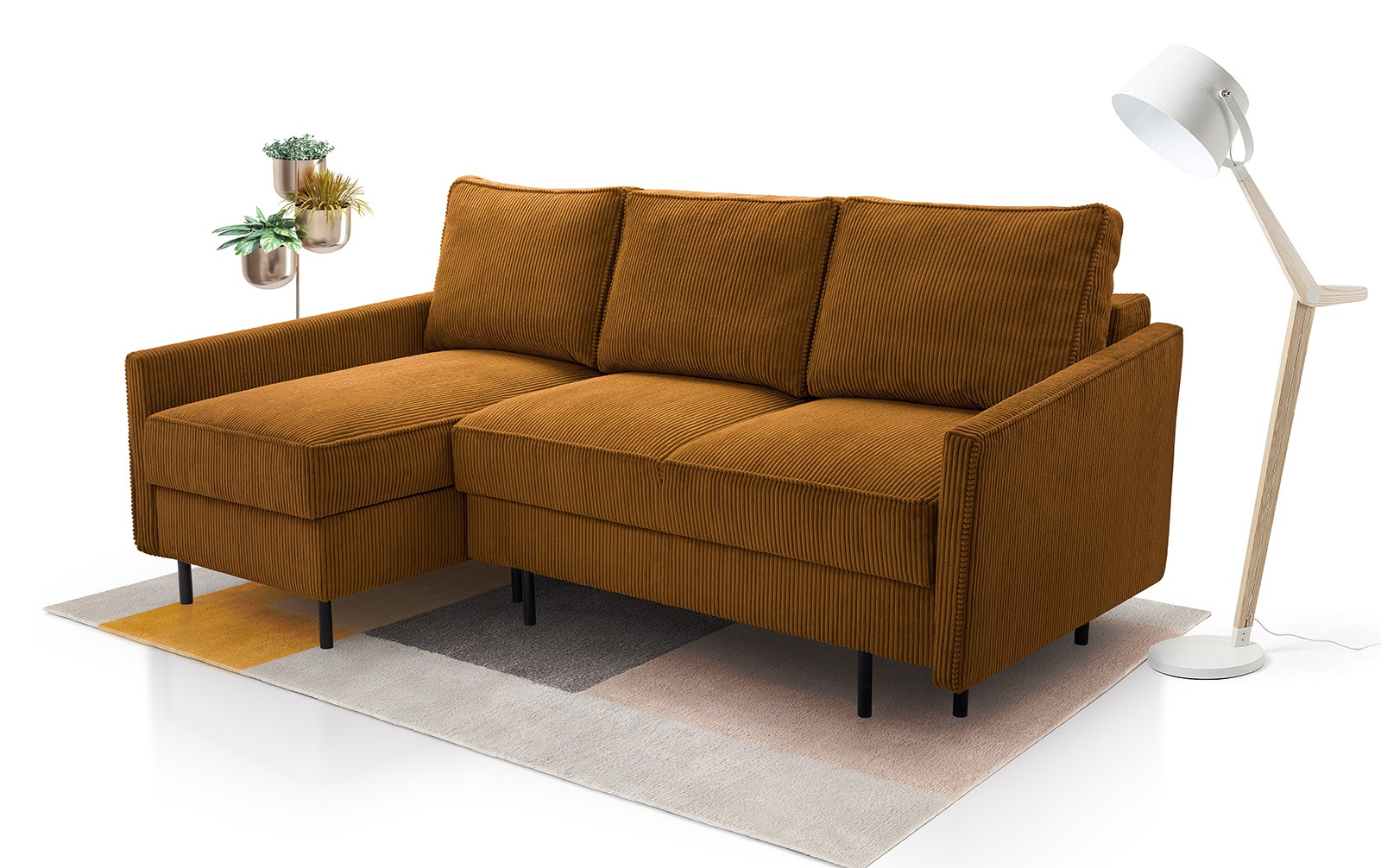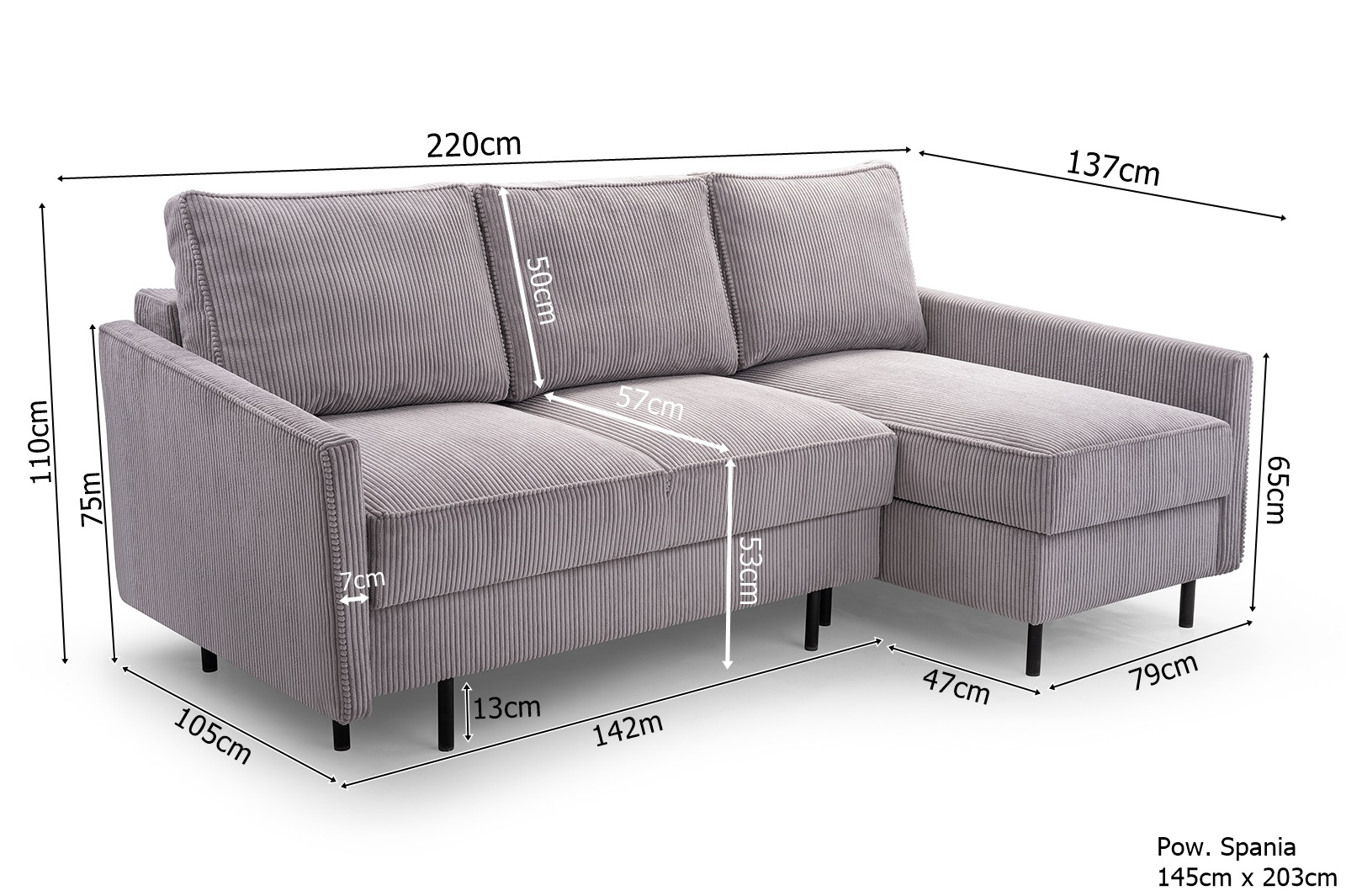 Narożnik z funkcją spania ROBIN 220 cm, Rozkładany, Pojemnik, Rogówka