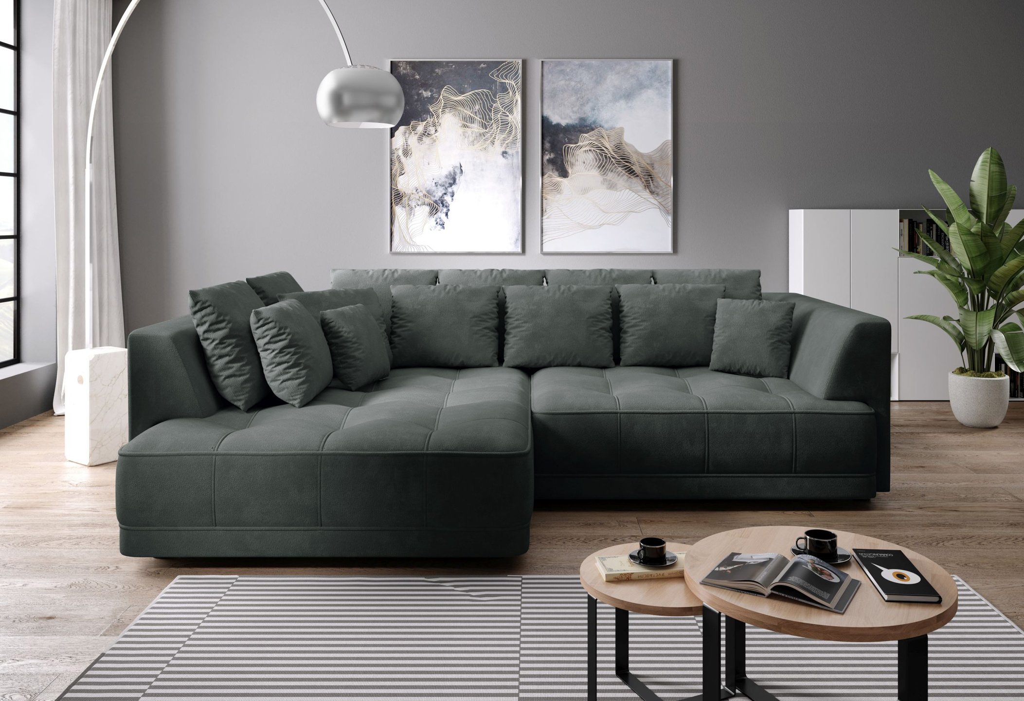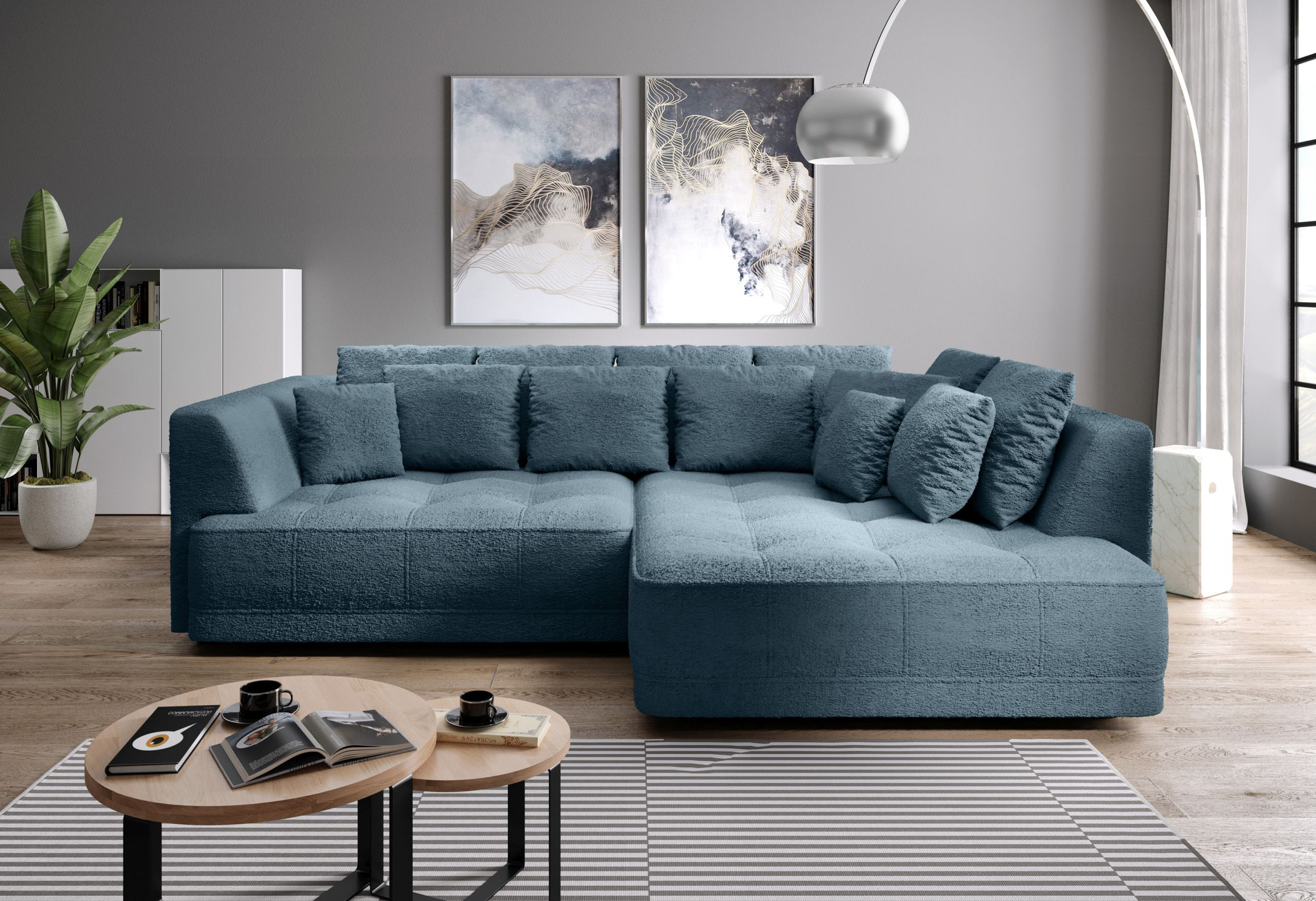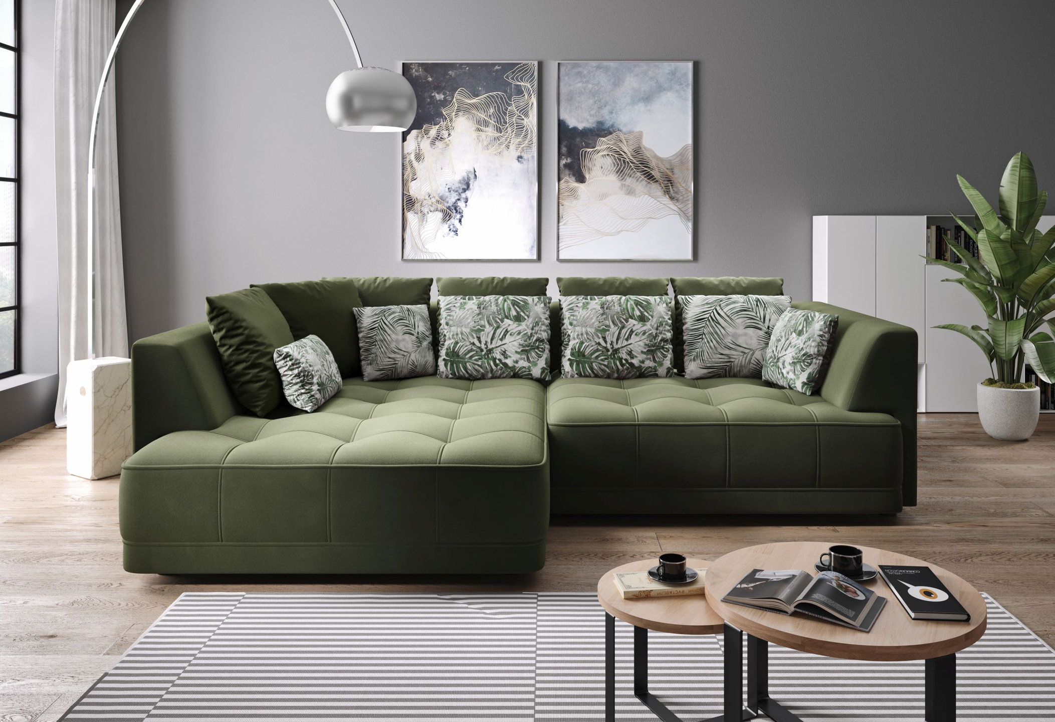 - tył narożnika obity w tkaninie, więc spokojnie może stać na środku pokoju