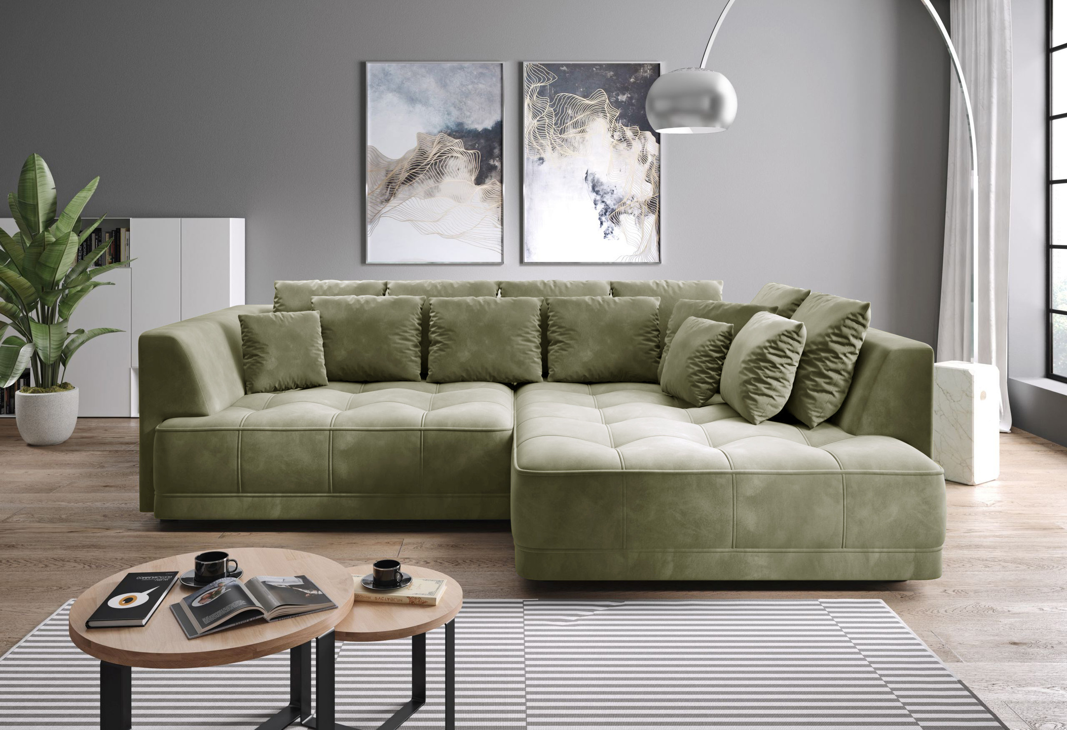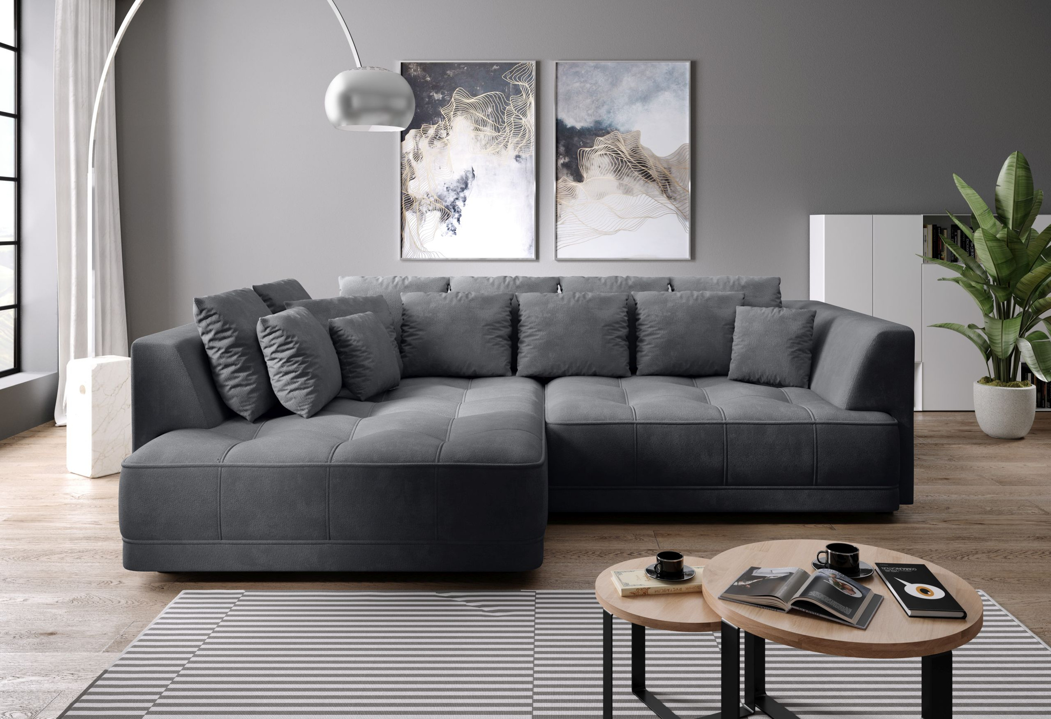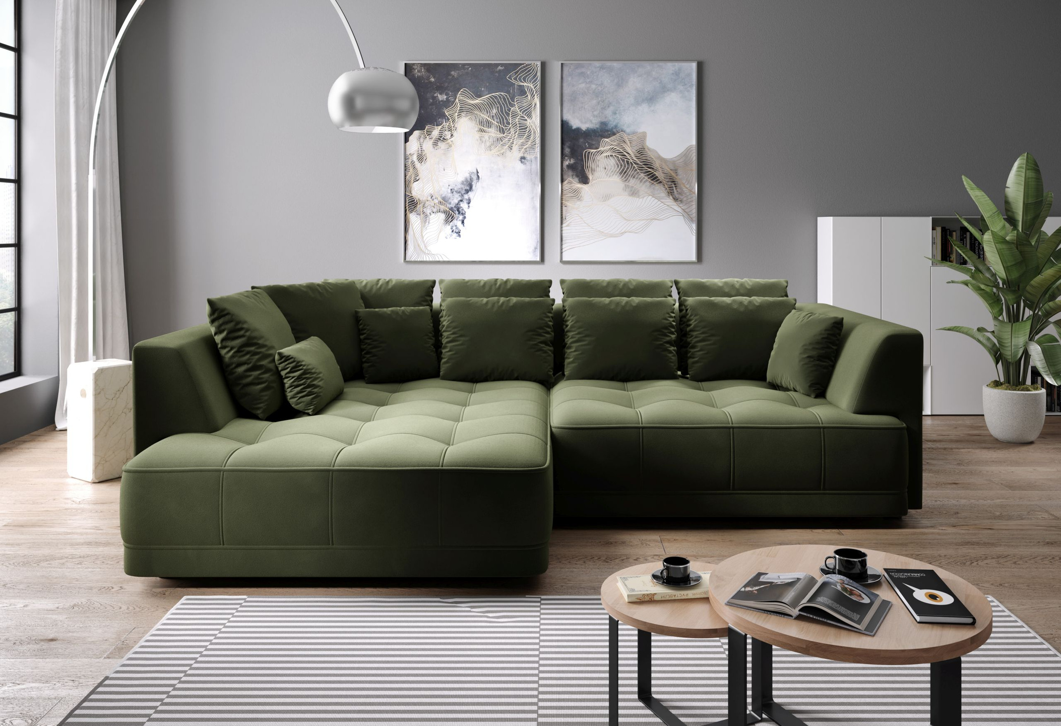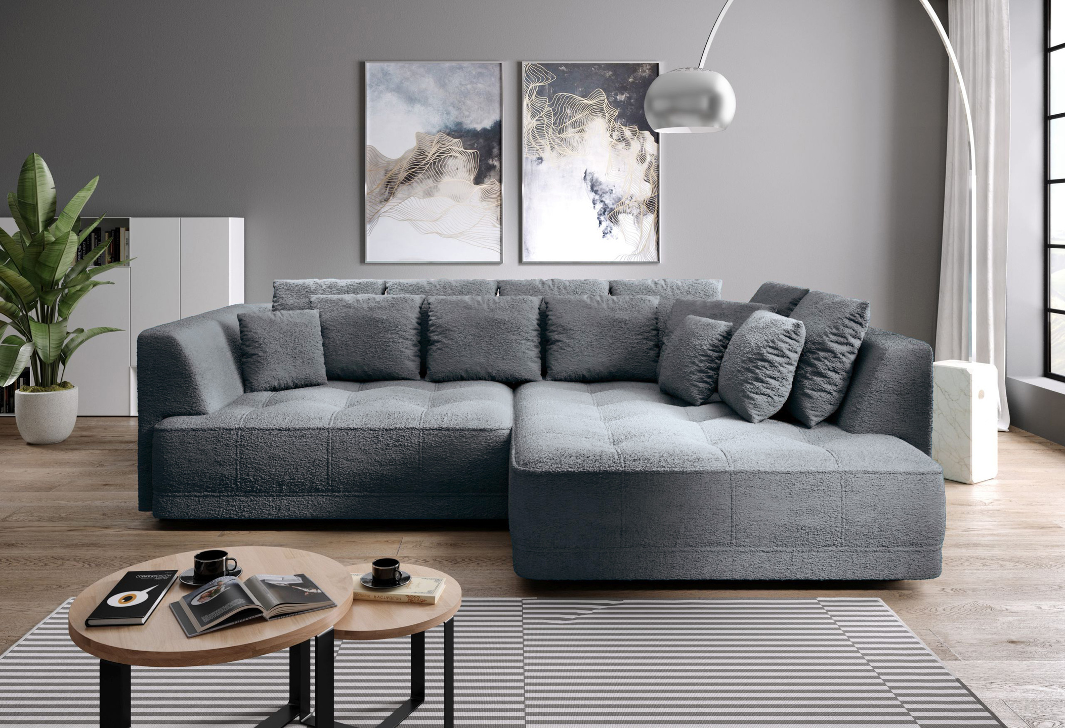 - tył narożnika obity w tkaninie, więc spokojnie może stać na środku pokoju