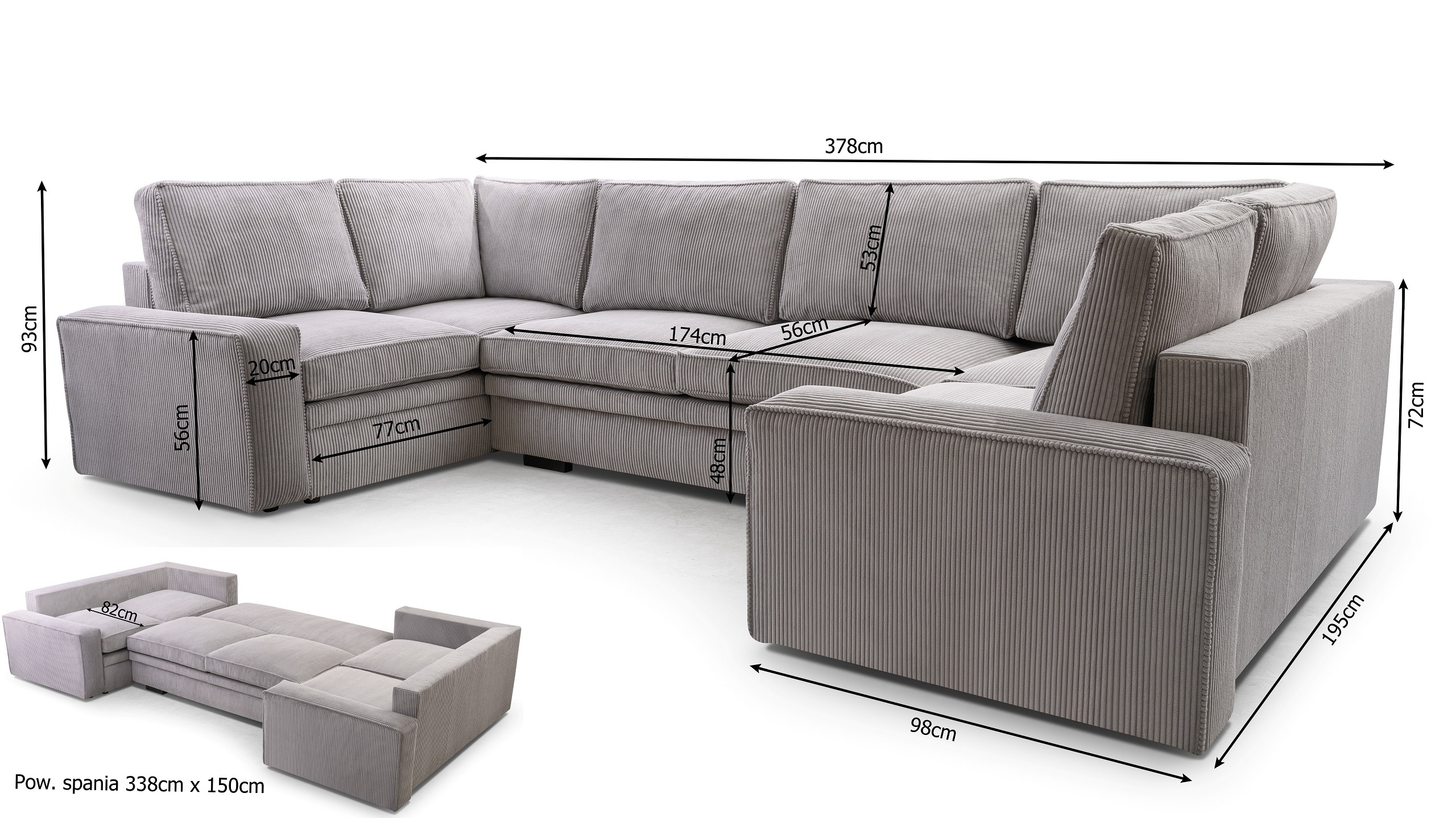 Narożnik z funkcją spania TOLEDO U 378 cm, Rogówka, W kształcie U