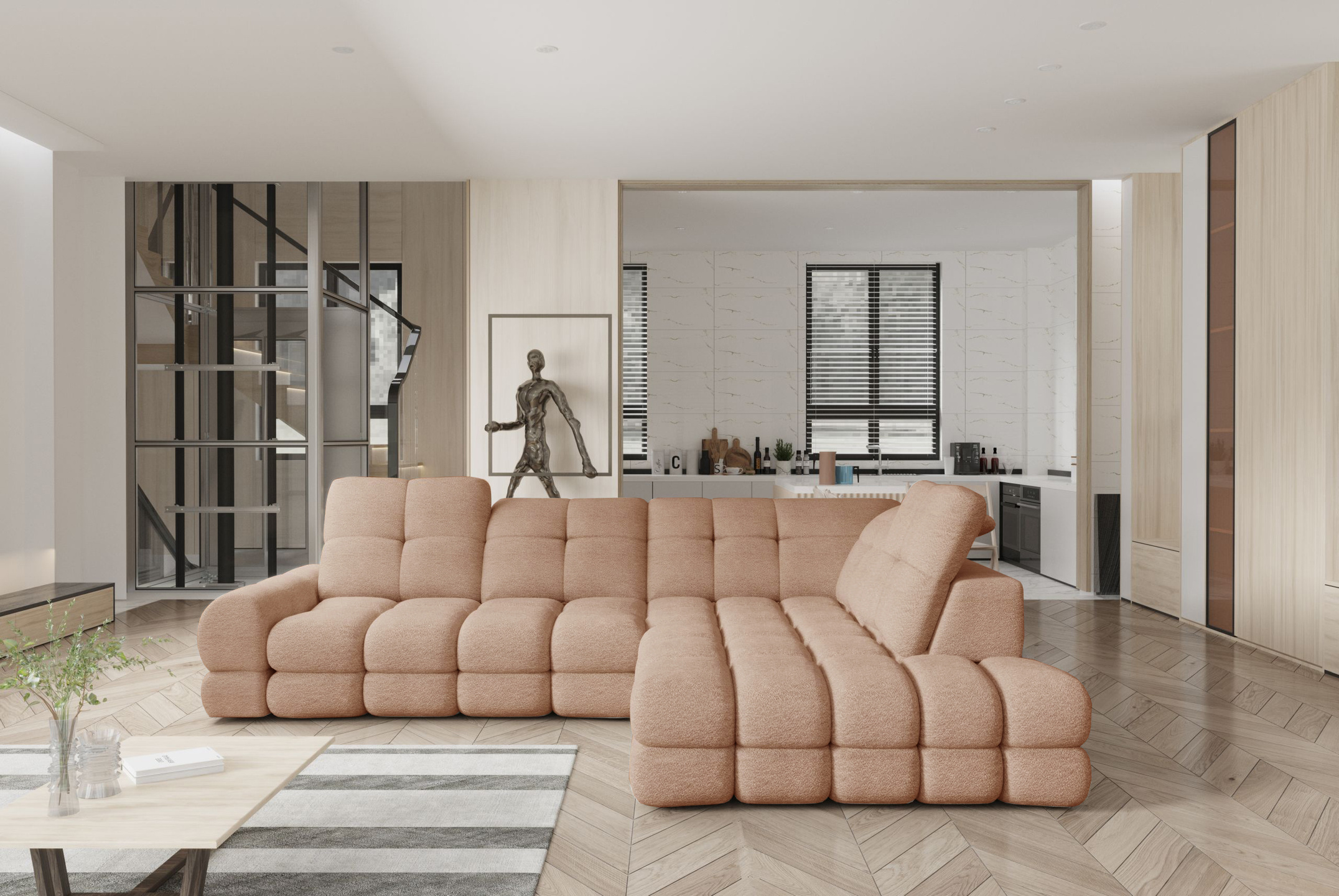 Narożnik z funkcją spania TOLLO L 302 cm, Elektryczna regulacja siedziska, Zagłówki