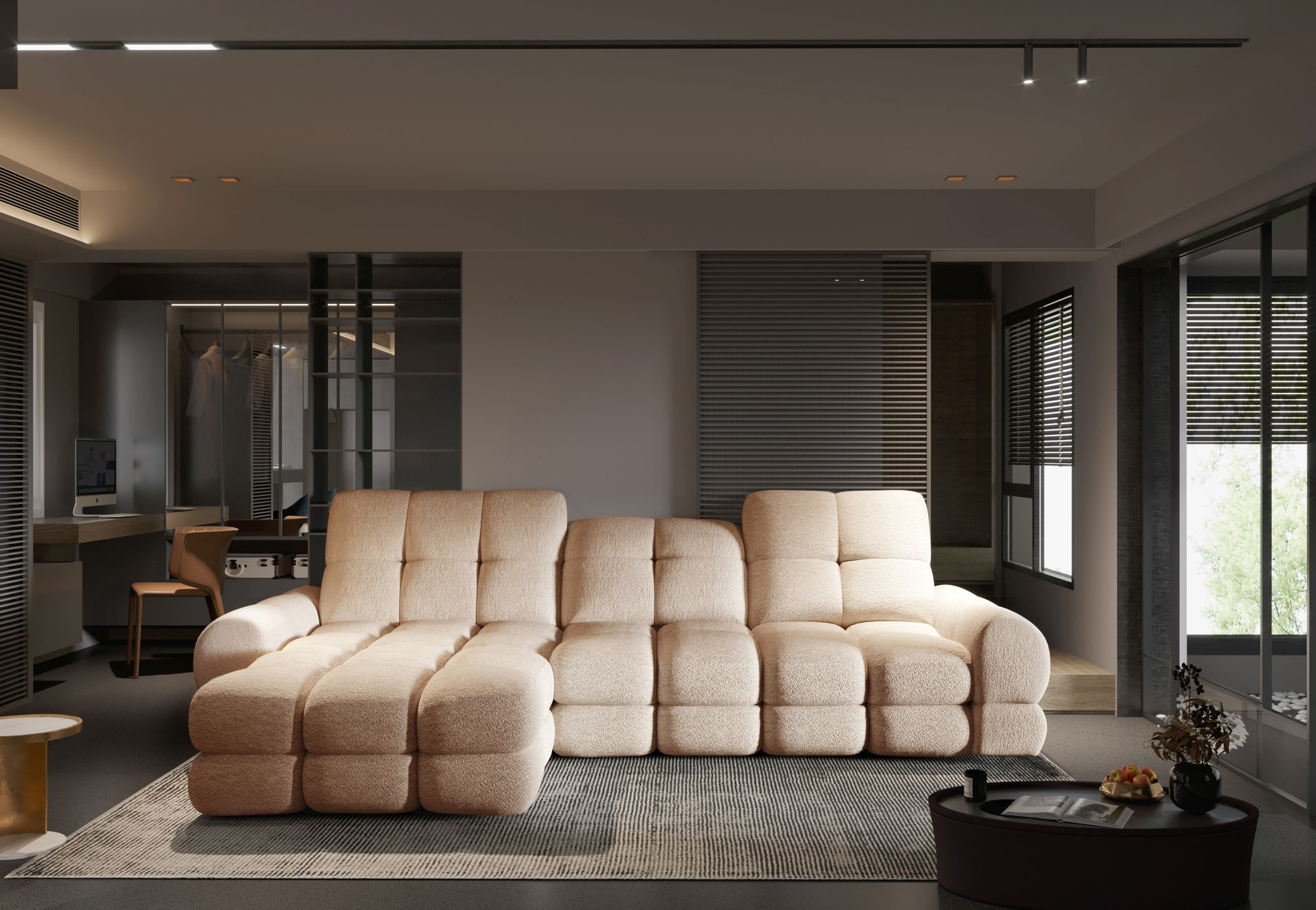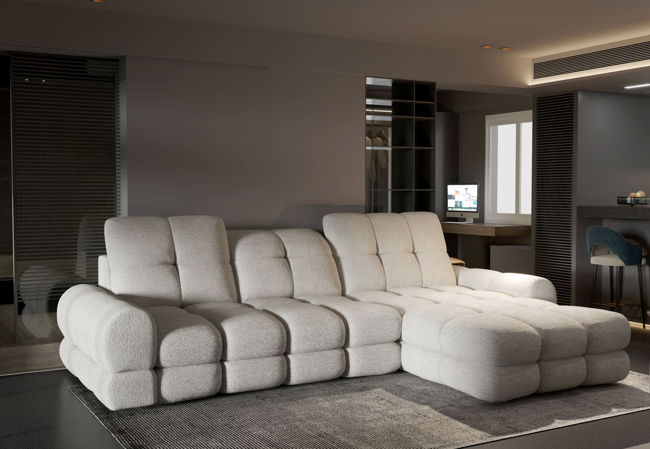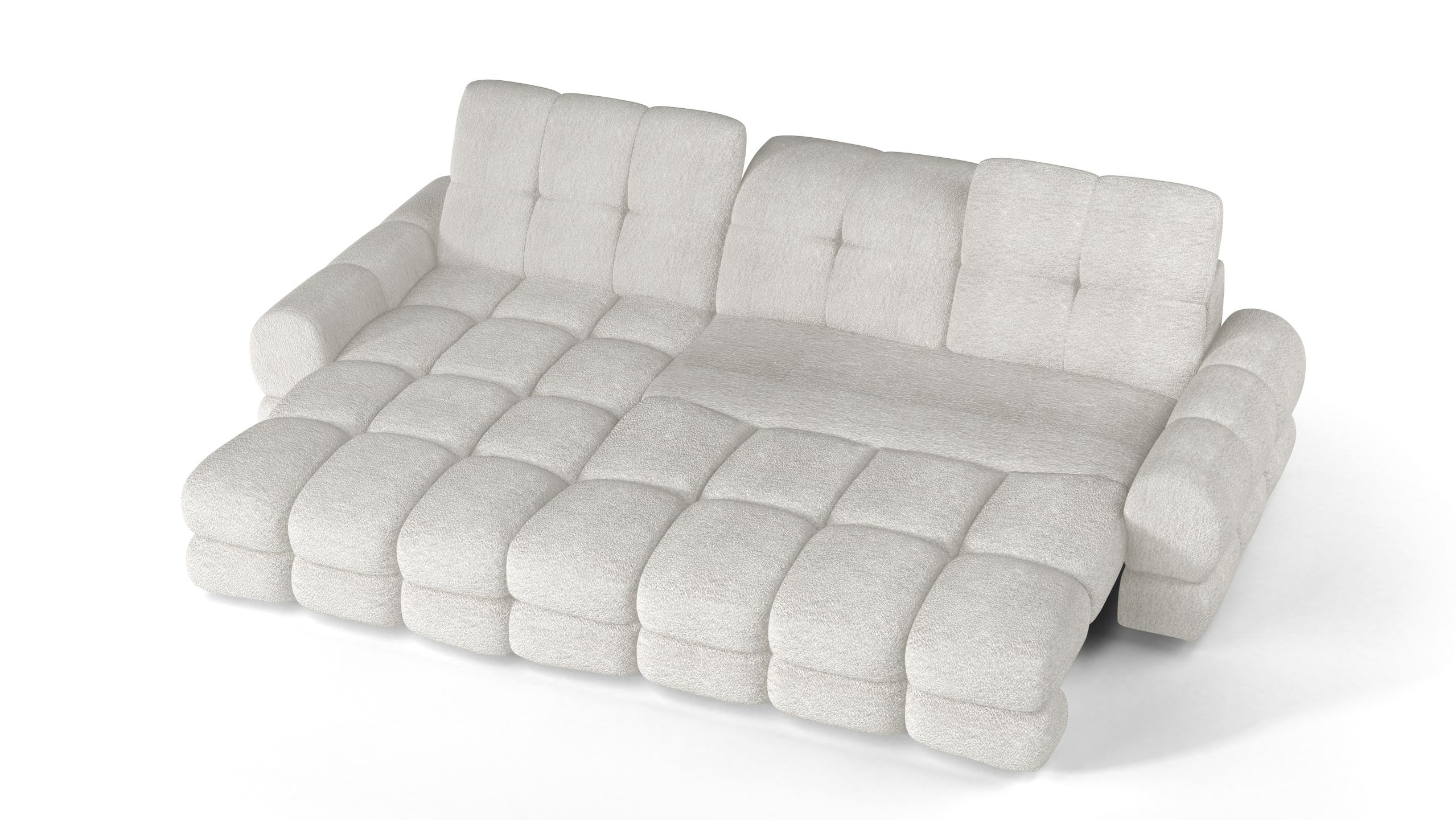 Zaprojektowany zgodnie z najnowszymi trendami. Masywne, wygodne siedzisko podkreślone głębokimi przeszyciami. Regulowane zagłówki pozwalają dostosować kąt nachylenia. Długi wysuw 0-60 cm daje możliwość stworzenia komfortowej powierzchni spania.