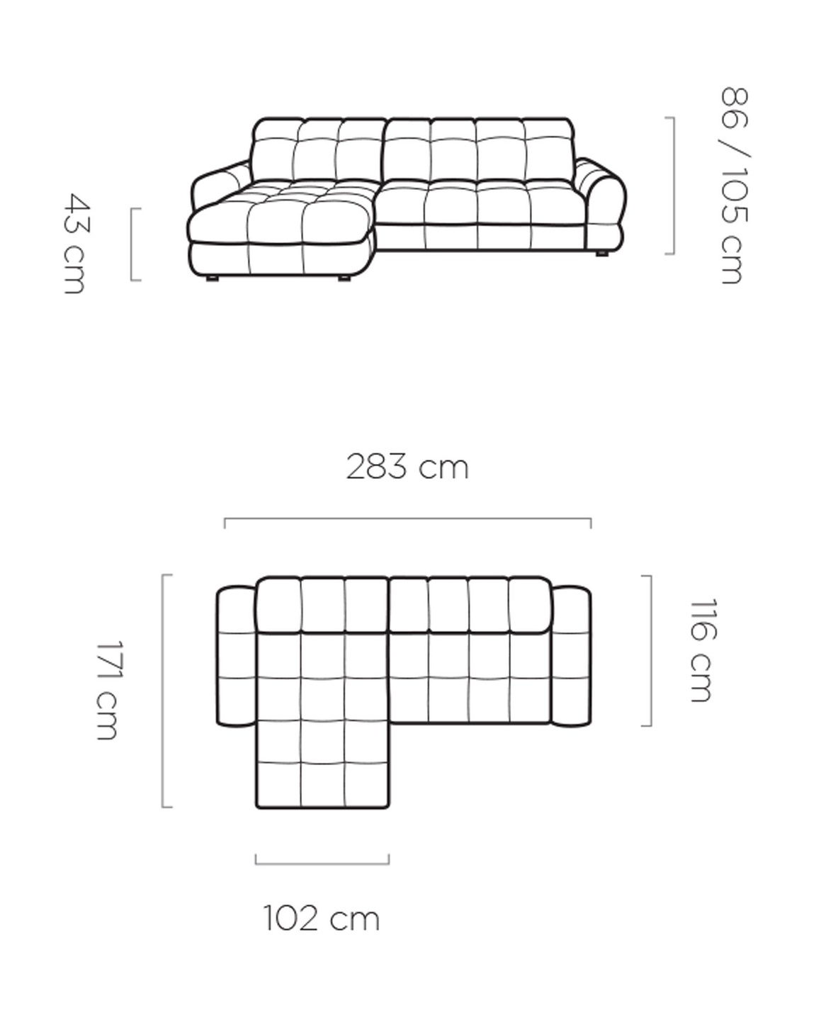 kolekcja Tollo składa się z narożników o różnych rozmiarach (L, S, XL) a także puf (L, XL)(wszystkie warianty pokazane są poniżej w opisie i dostępne są w naszym sklepie)