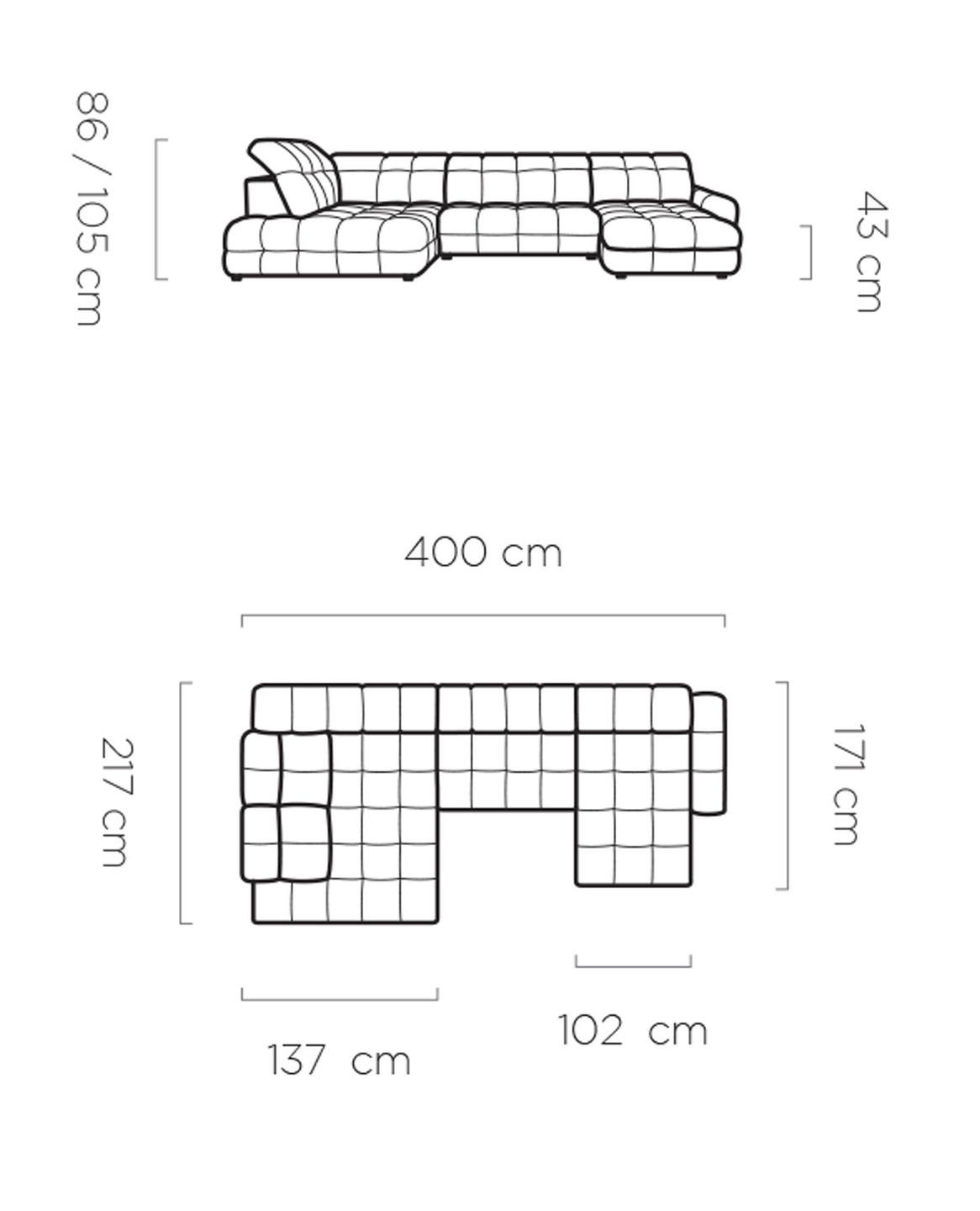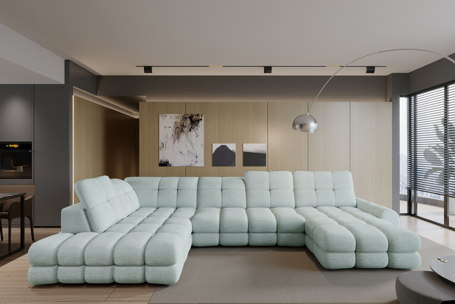 Zaprojektowany zgodnie z najnowszymi trendami. Masywne, wygodne siedzisko podkreślone głębokimi przeszyciami. Regulowane zagłówki pozwalają dostosować kąt nachylenia. Długi wysuw 0-60 cm daje możliwość stworzenia komfortowej powierzchni spania.