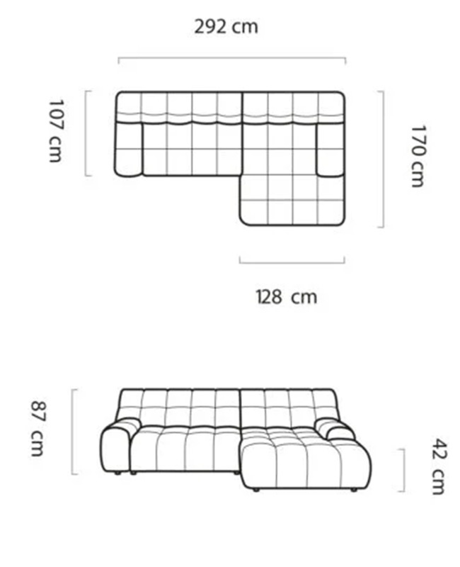 - narożnik nie posiada typowej funkcji spania, ale po wysunięciu siedziska spokojnie wyśpi się jedna osoba (elektrycznie wysuwane siedzisko)