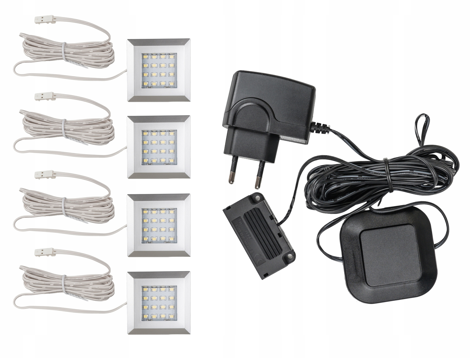 Oświetlenie LED SQUARE 4 klipsy /barwa biały zimny: