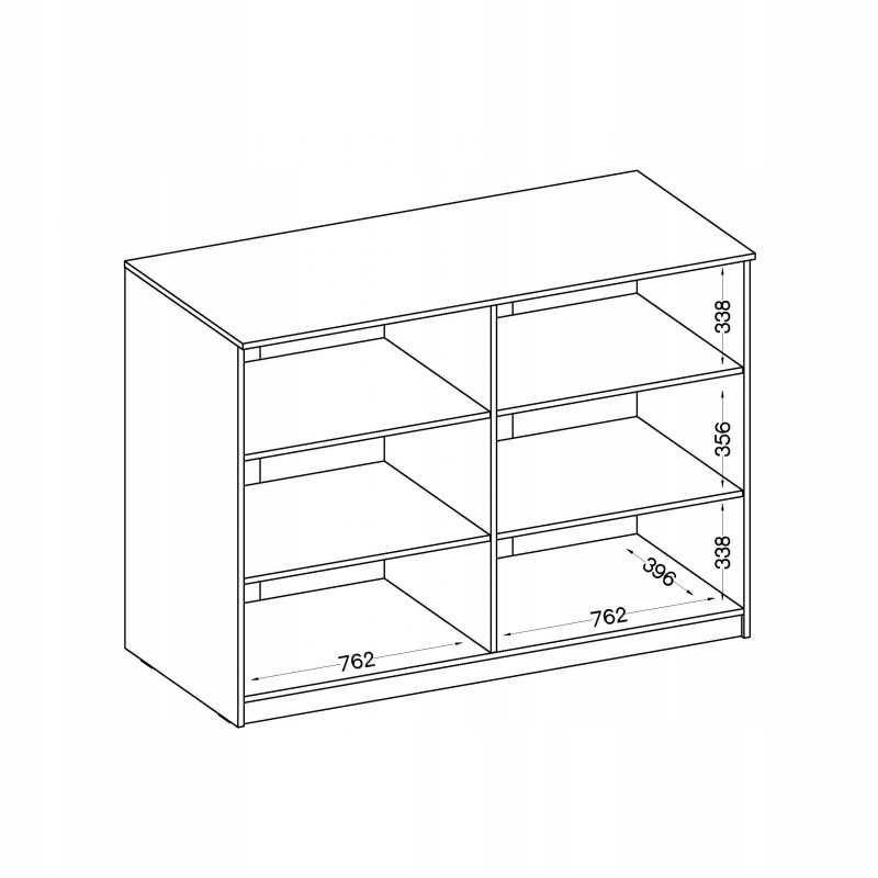 - Wysokość półki wewnętrznej: 762mm x 338mm x 396mm