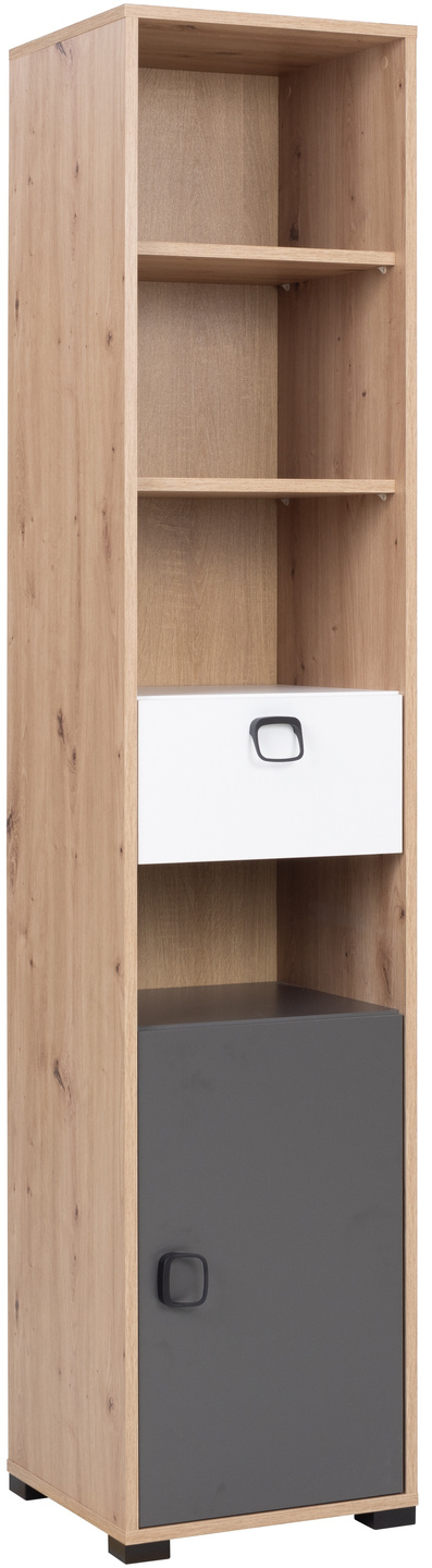 Regał KEVIN 3 80cm szuflada, Meble Młodzieżowe Dąb Artisan / Grafit / Biały