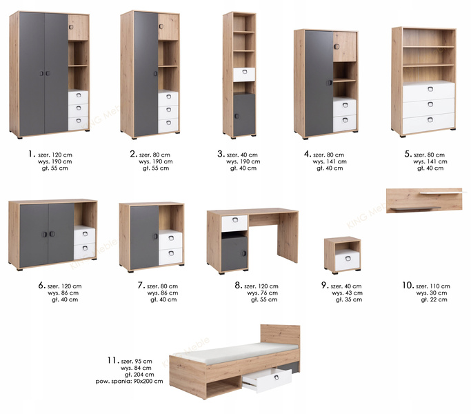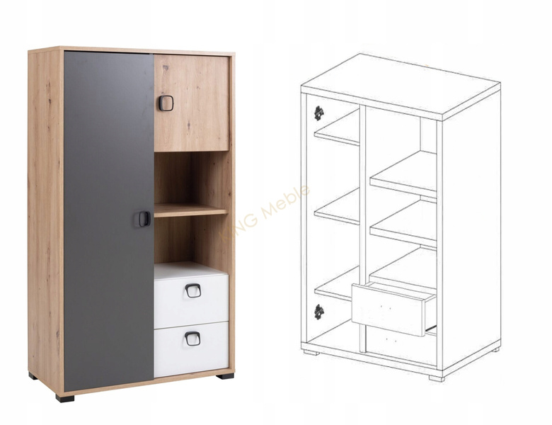 Regał KEVIN 80cm z szufladami, Regał 4, Meble Młodzieżowe KEVIN Kolor mebla biały dąb artisan grafit