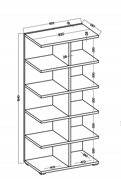 - wymiary: szer. 832mm, wys. 1840mm, gł. 297mm