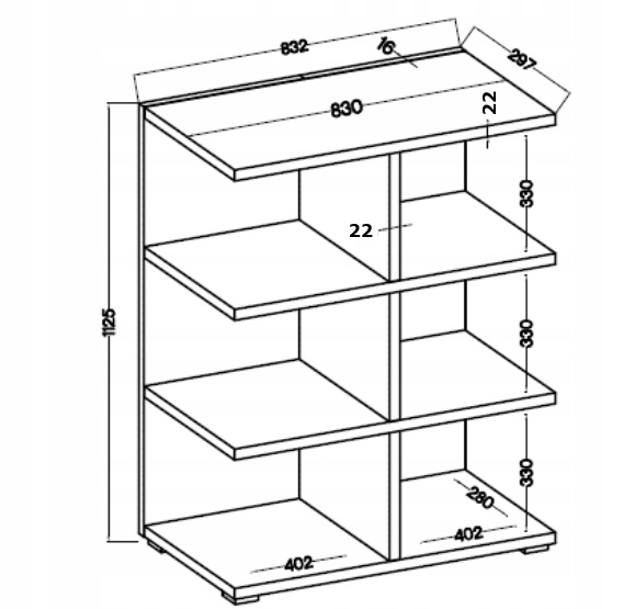 - wymiary: szer. 832mm, wys. 1125mm, gł. 297mm