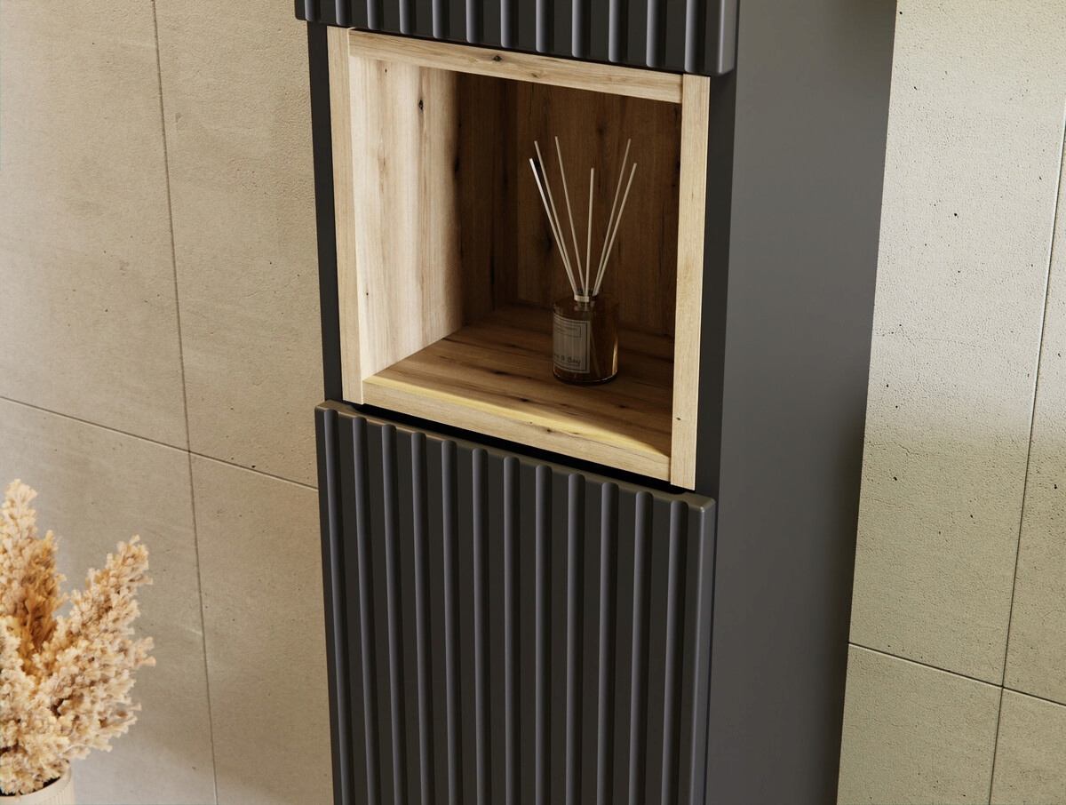 - front wykonany z płyty MDF - frezowane ryfle pionowe w kolorze czarny mat
