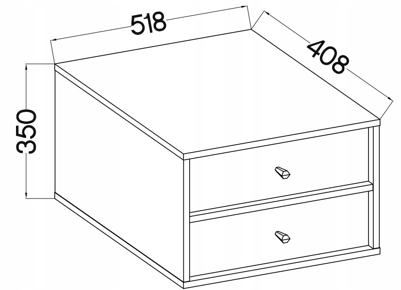 - Front oraz korpus wykonany z płyty laminowanej o grubości 16mm w kolorze eucaliptus