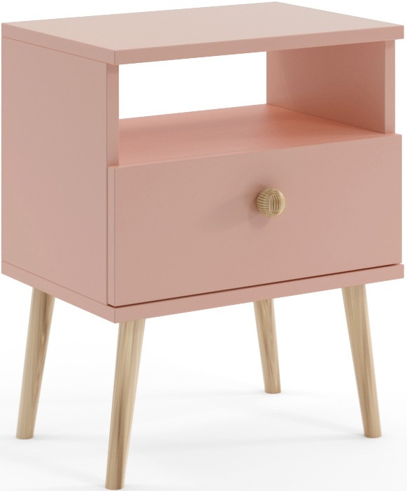 Stolik nocny BOHO z szufladą, drewniane nogi RÓŻ