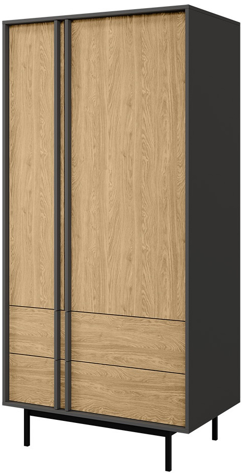 Szafa ALSY 1 93cm, Meble Pokojowe ALSY Antracyt / Dąb Olejowany