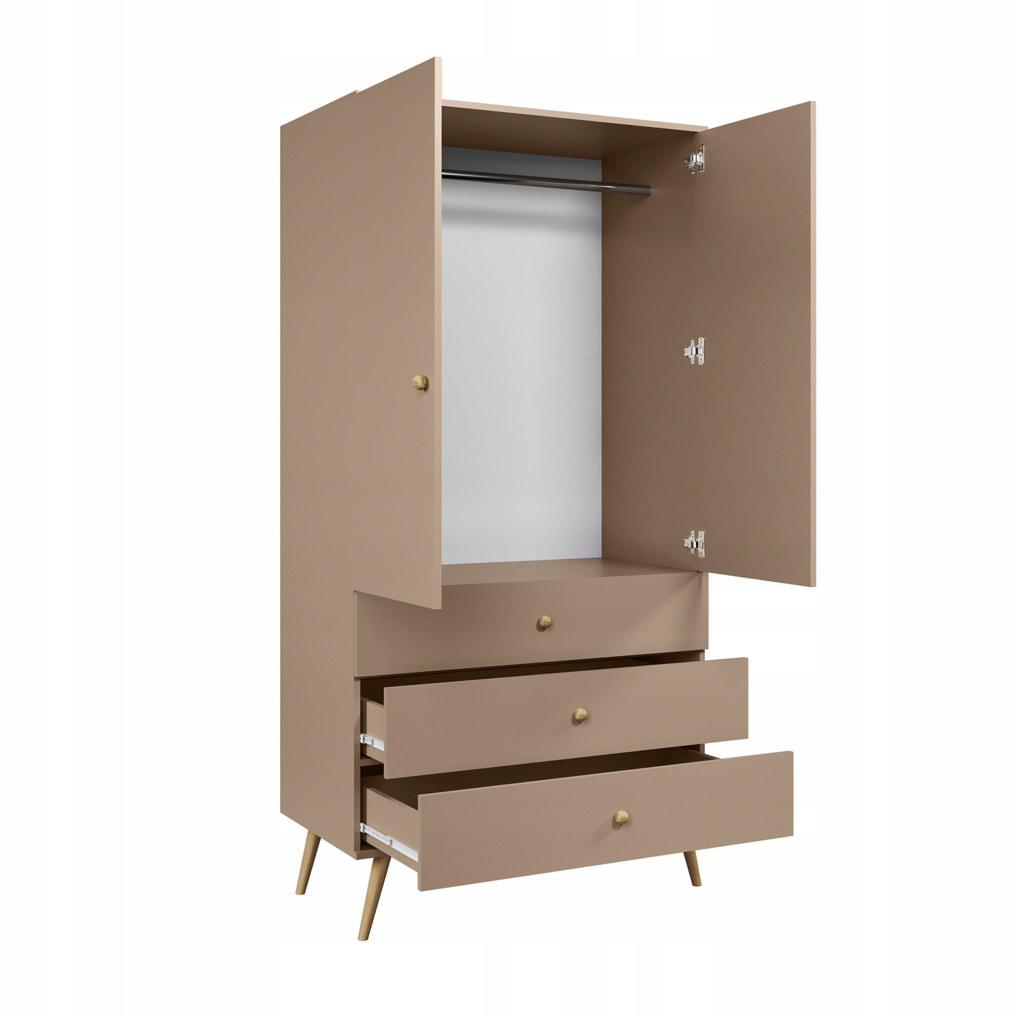 Szafa BOHO uchylna, drewniane nogi MACCHIATO trzy szuflady + drążek Liczba drzwi szafa dwudrzwiowa