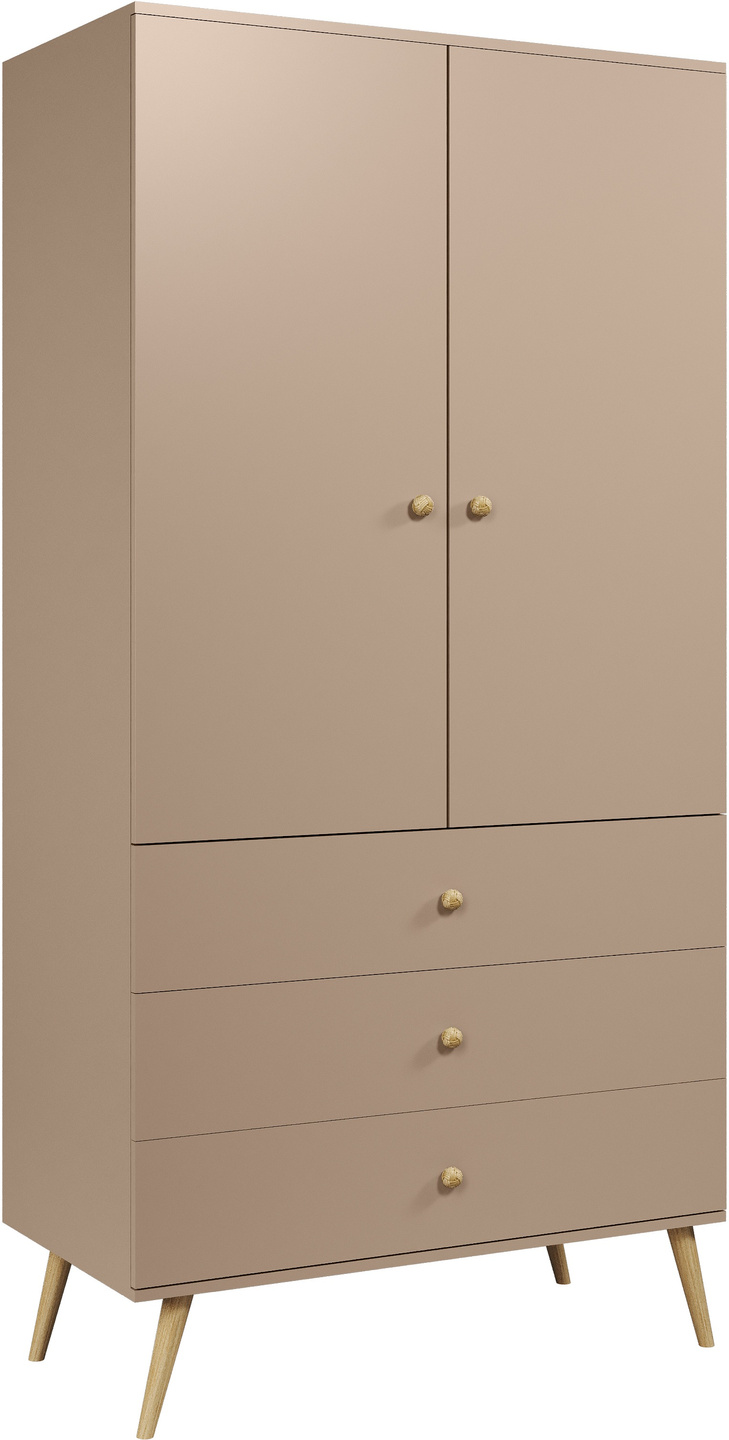 Szafa BOHO uchylna, drewniane nogi MACCHIATO trzy szuflady + drążek Wysokość mebla 202 cm