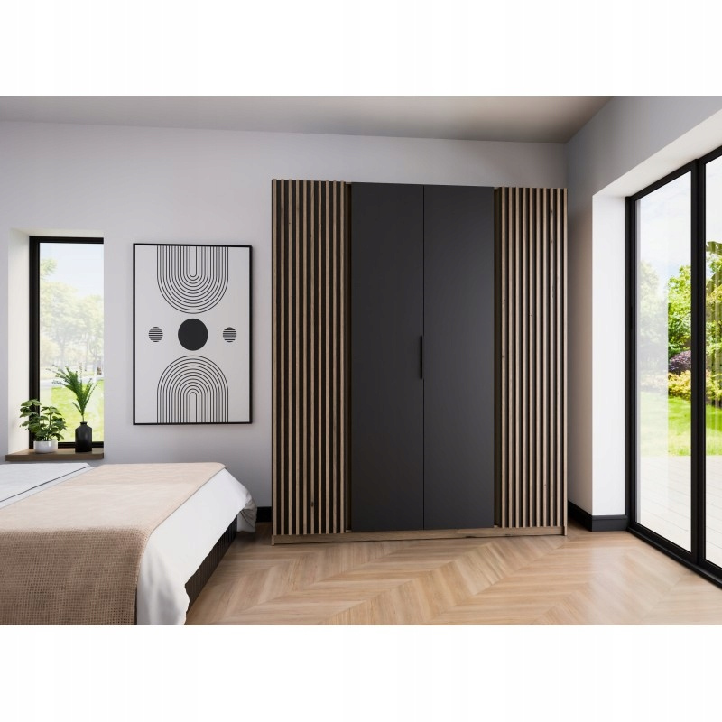 Szafa KAJA 2LAM 2F Czarny/Dąb Evoke/Lamele: