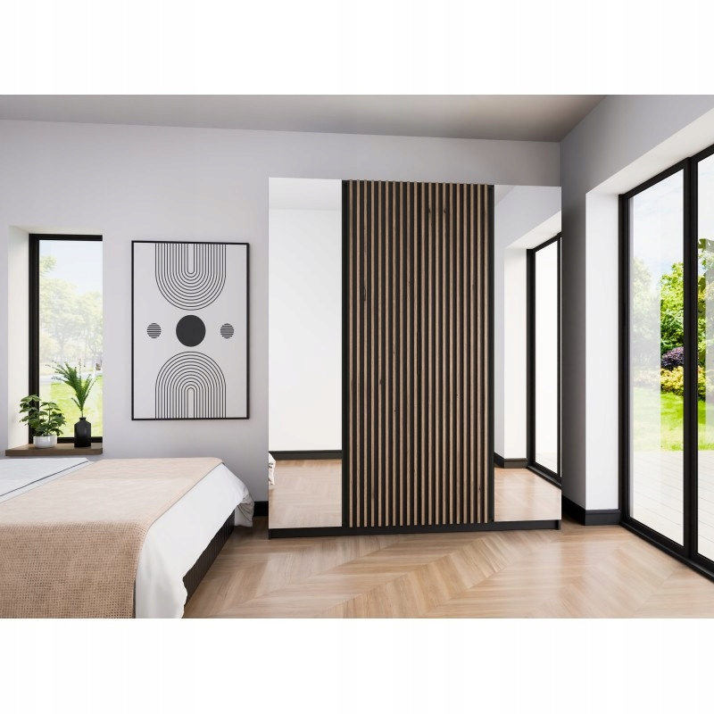 Szafa KAJA 2LUSTRA 2LAM Czarny/Dąb Evoke Lamele: