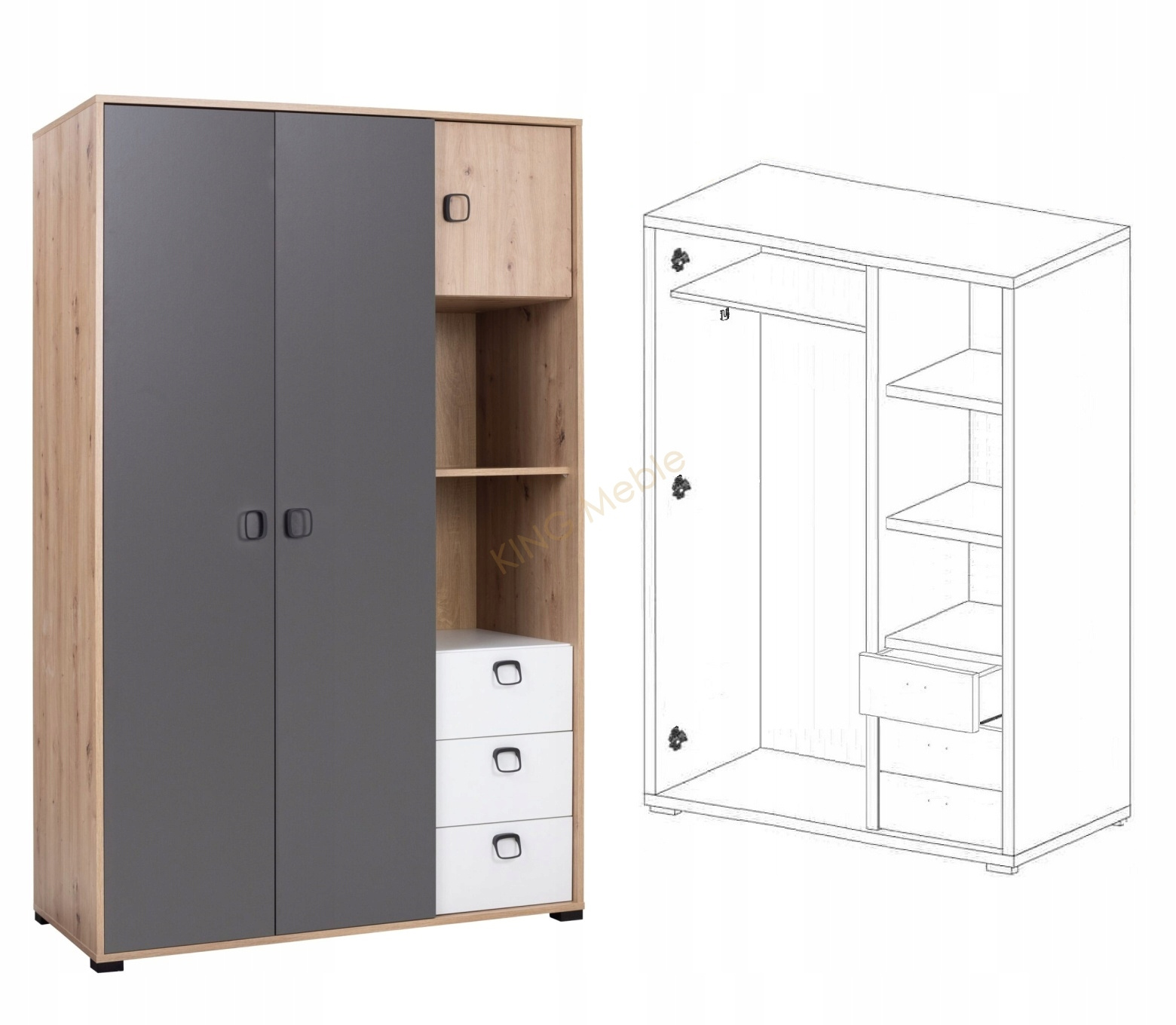Szafa Dwudrzwiowa KEVIN 120cm z szufladami, Szafa 1,Meble Młodzieżowe KEVIN
