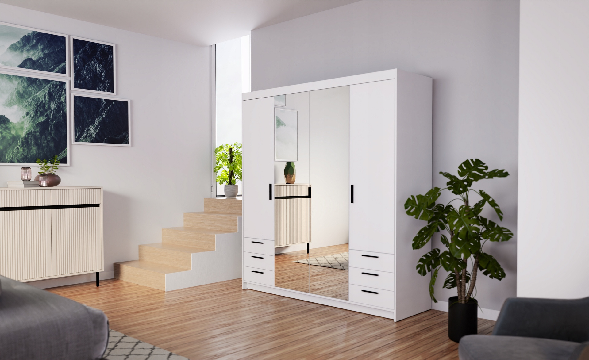 - aukcja dotyczy szafy ELENA 4D 6S LUSTRO w kolorze: białym
