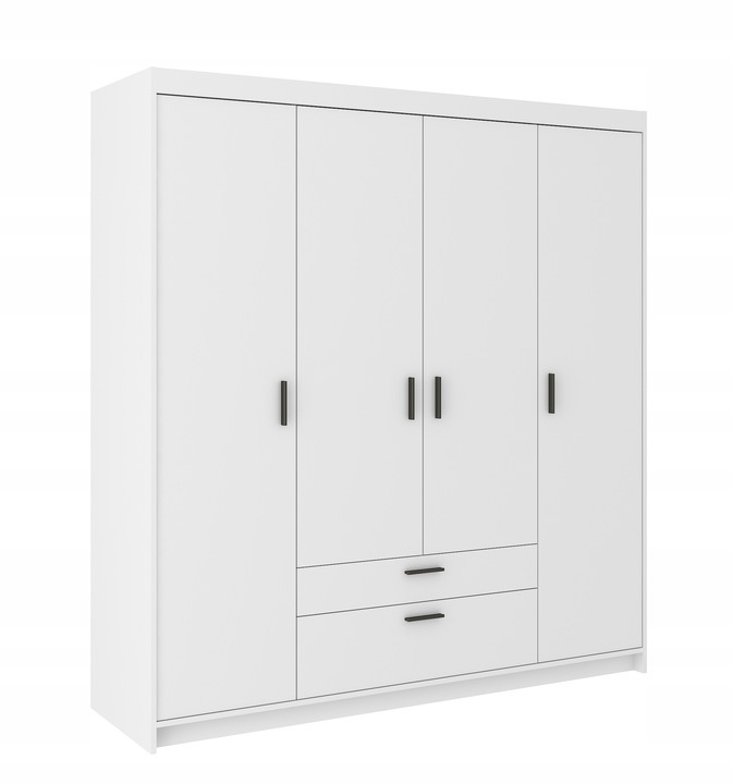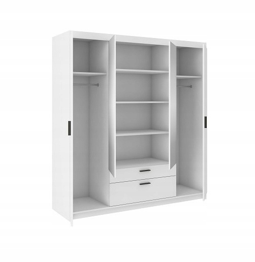 Posiada zarówno drążki na wieszanie ubrań jak i pojemne półki oraz dwie szuflady.
