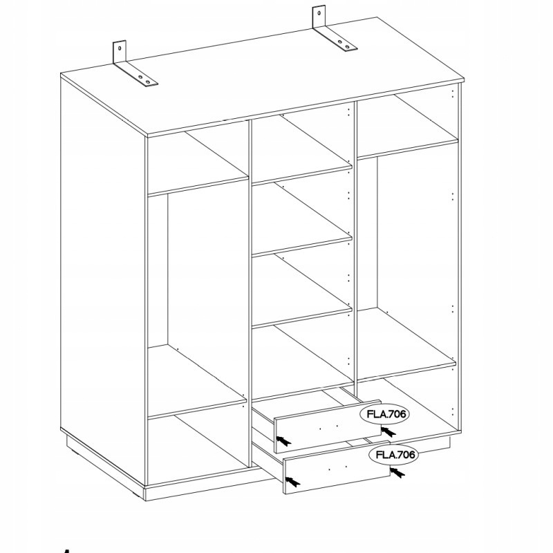 - za frontem środkowym znajdują się trzy półki