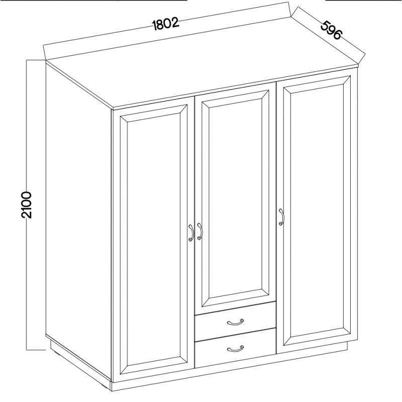 Szafa posiada trzy fronty, dwie szuflady i czarne metalowe uchwyty podkreślające styl mebla.