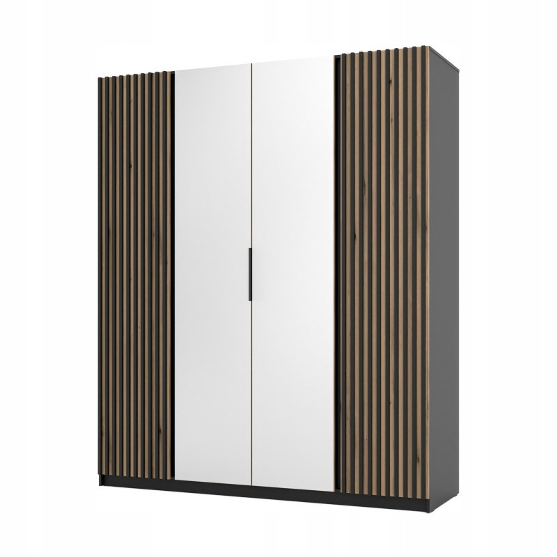 Szafa KAJA 2LAM 2LUSTRO Czarny/Dąb Evoke/Lamele: