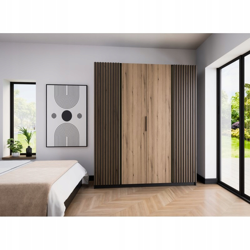 Szafa KAJA 2LAM 2F Dąb Evoke/Czarny/Lamele: