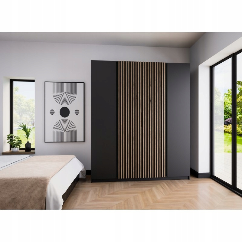 Szafa KAJA 2F 2LAM Czarny/Dąb Evoke Lamele: