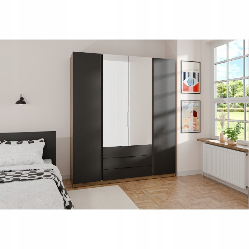Szafa KAJA 2F 2 LUSTRA 3S Czarny/Dąb Evoke: