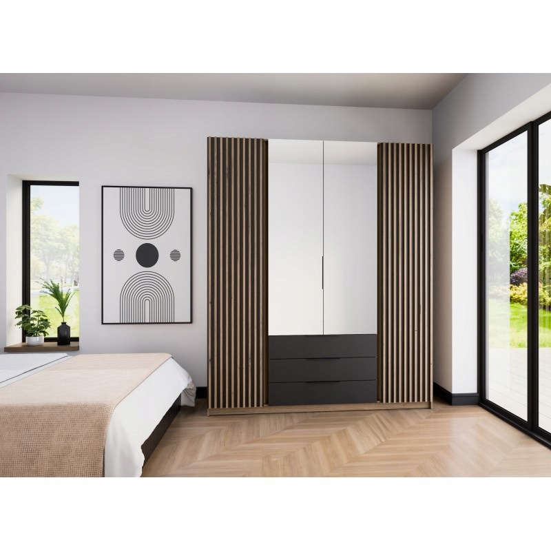 Szafa KAJA 2LAM 2LLUSTRO 3S Czarny/Dąb Evoke/Lamele: