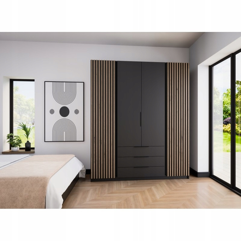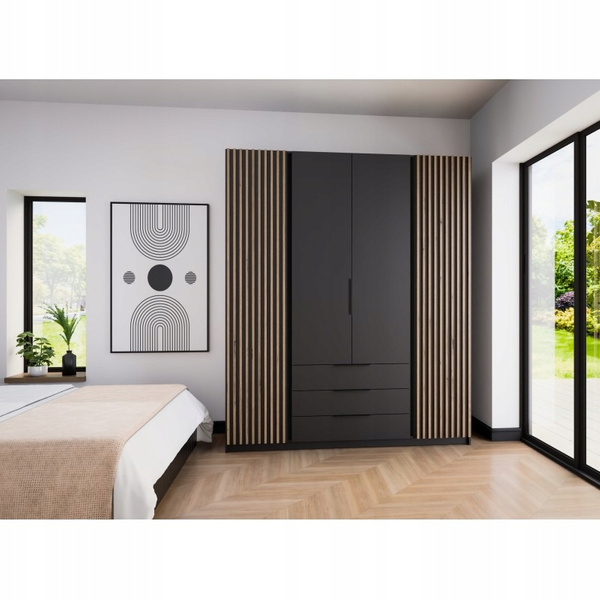 Szafa KAJA 2LAM 2F 3S Czarny / Dąb Evoke Lamele drzwi szuflady