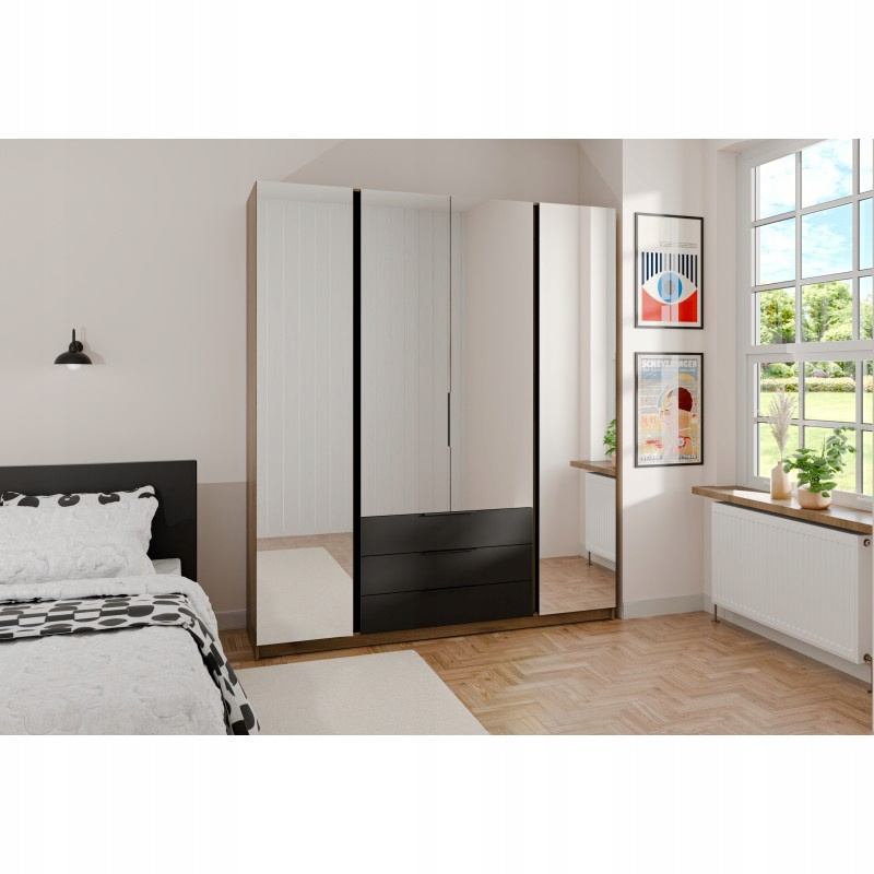 Szafa KAJA 4 LUSTRA 3S Czarny/Dąb Evoke: