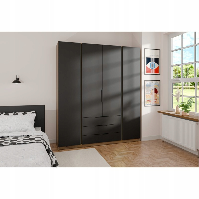 Szafa KAJA 4F 3S Czarny/Dąb Evoke: