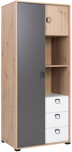 Szafa KEVIN 2 80cm, szuflady, Regał, Meble Młodzieżowe Dąb / Grafit / Biały