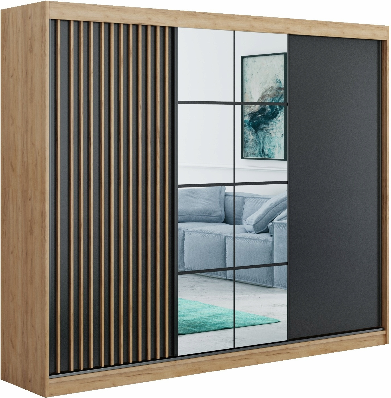 Szafa loftowa ROCCO 250 lustro, drzwi przesuwne, lamele Szerokość mebla 250 cm