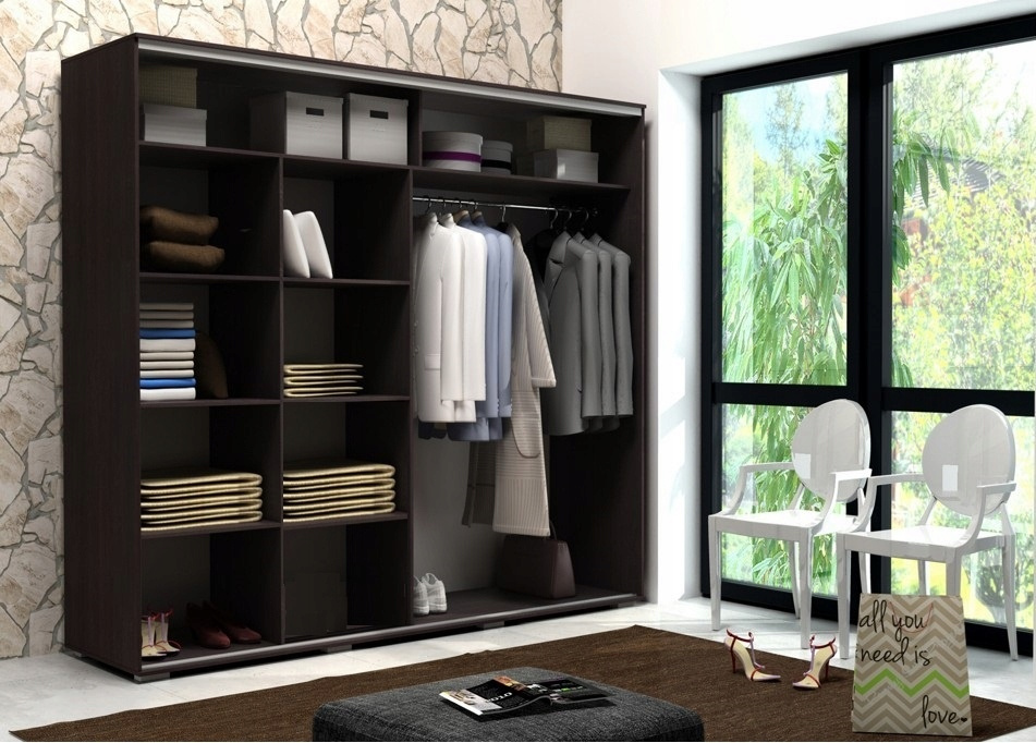 Szafa posiada drzwi przesuwne, z lustrem na jednym froncie. Wykonana jest z płyty laminowanej o grubości 16mm. Posiada system drzwi przesuwnych LAGUNA, dolne prowadnice jak i uchwyt wzdłuż drzwi wykonane są z ALUMINIUM.