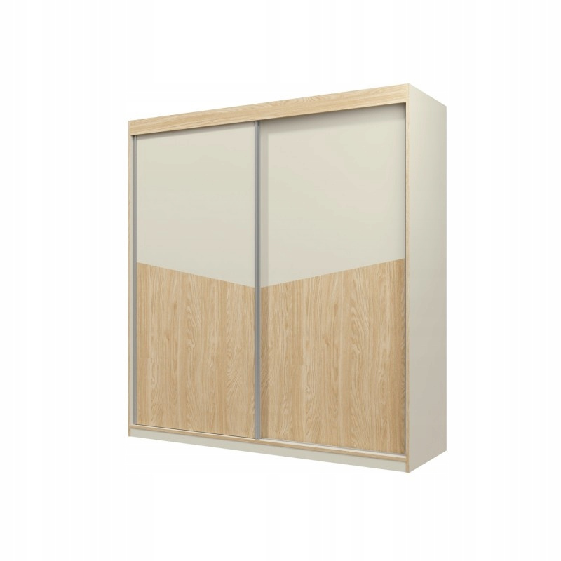 Szafa posiada dwa przesuwne fronty. Wewnątrz znajduje się drążek na wieszaki oraz półki.
