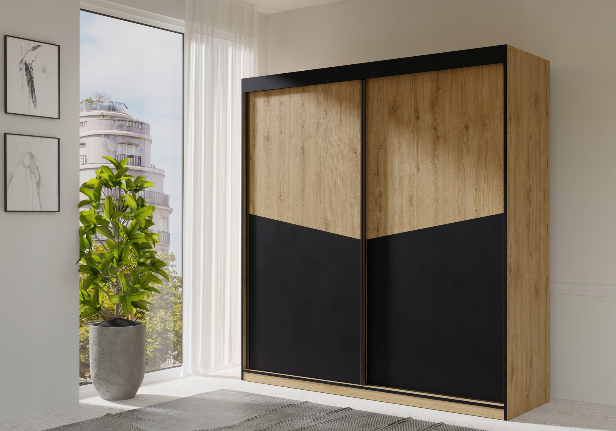 Szafa przesuwna ASTON 1, Meble do Sypialni ASTON, Dąb Odwieczny / Czarny Materiał płyta laminowana
