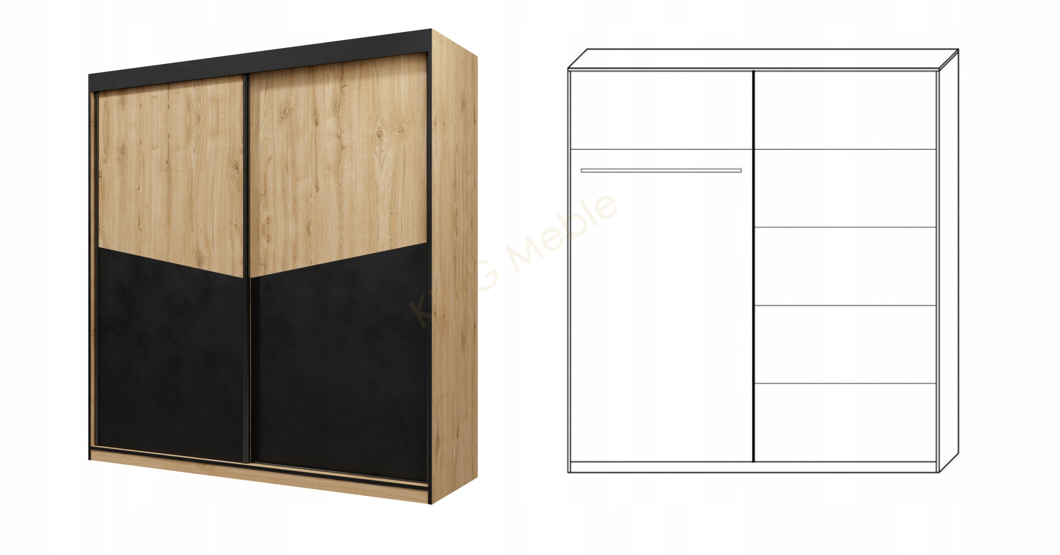 Szafa przesuwna ASTON 1, Meble do Sypialni ASTON, Dąb Odwieczny / Czarny Liczba szuflad 0