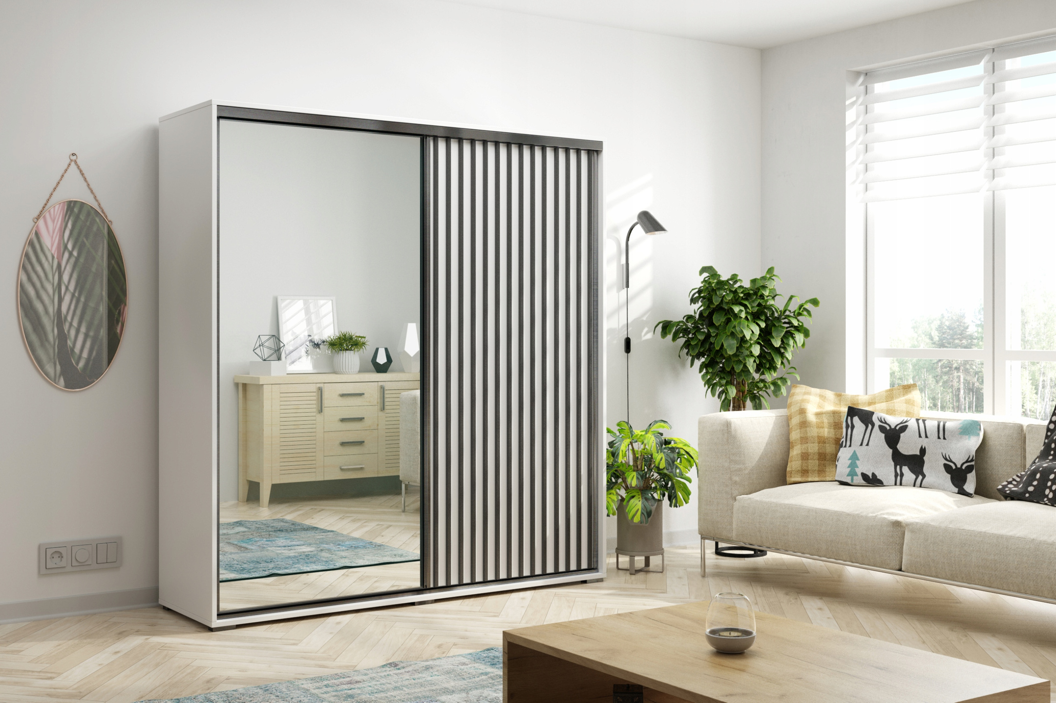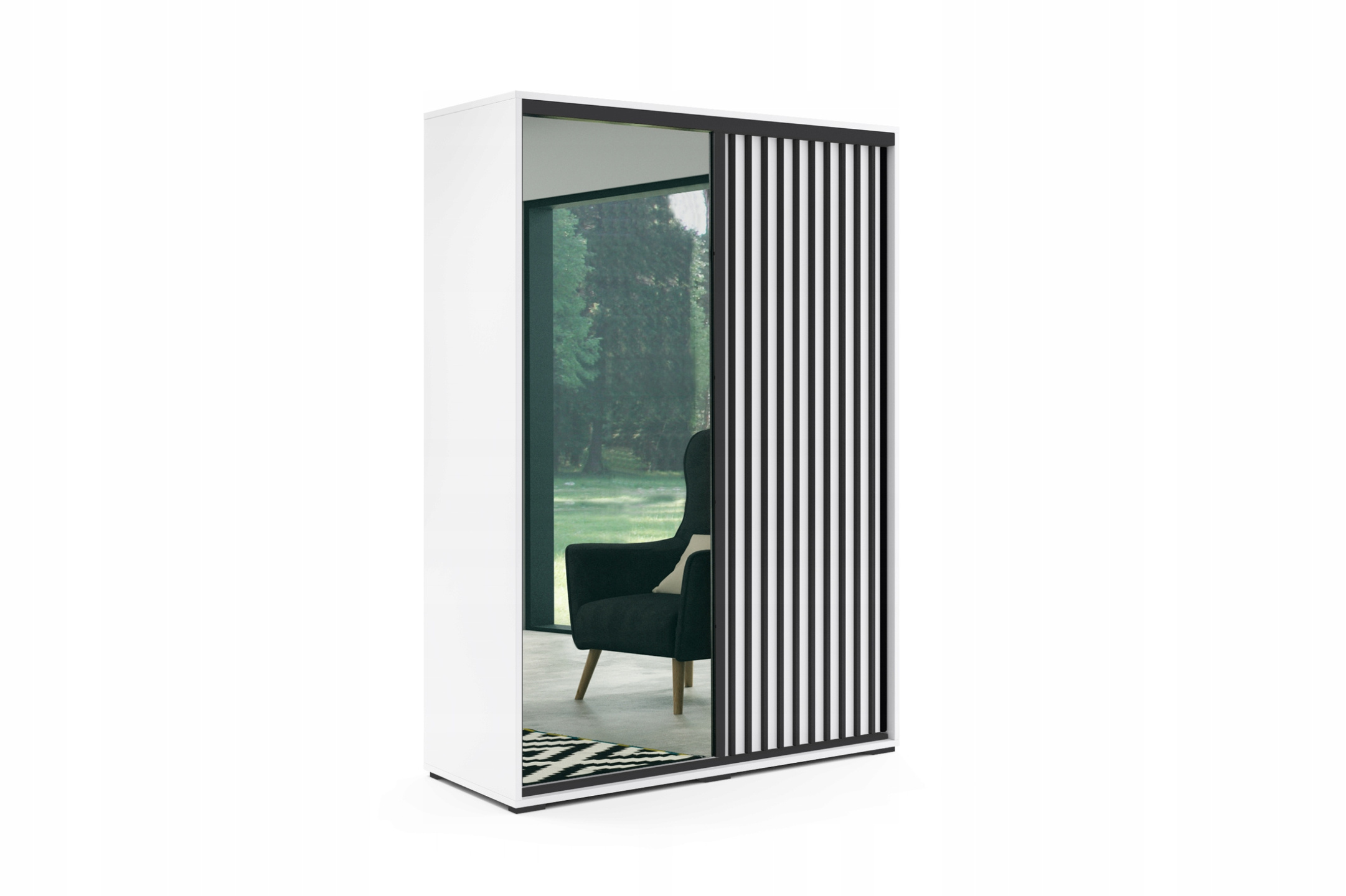 Szafa przesuwna ATENA 150 lustro, lamele Biały / Czarny