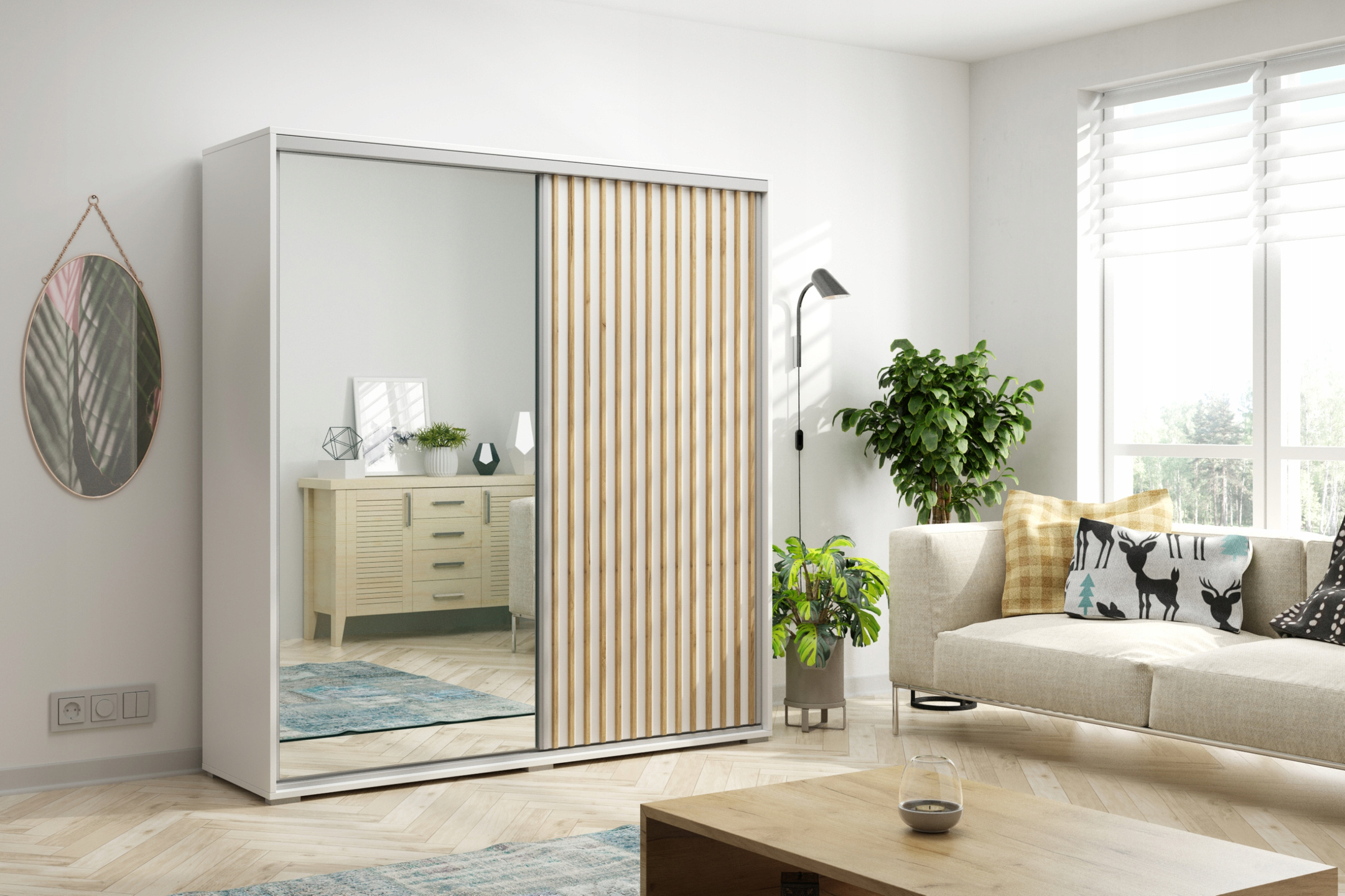 Szafa przesuwna ATENA 200 lustro, lamele Biały / Czarny
