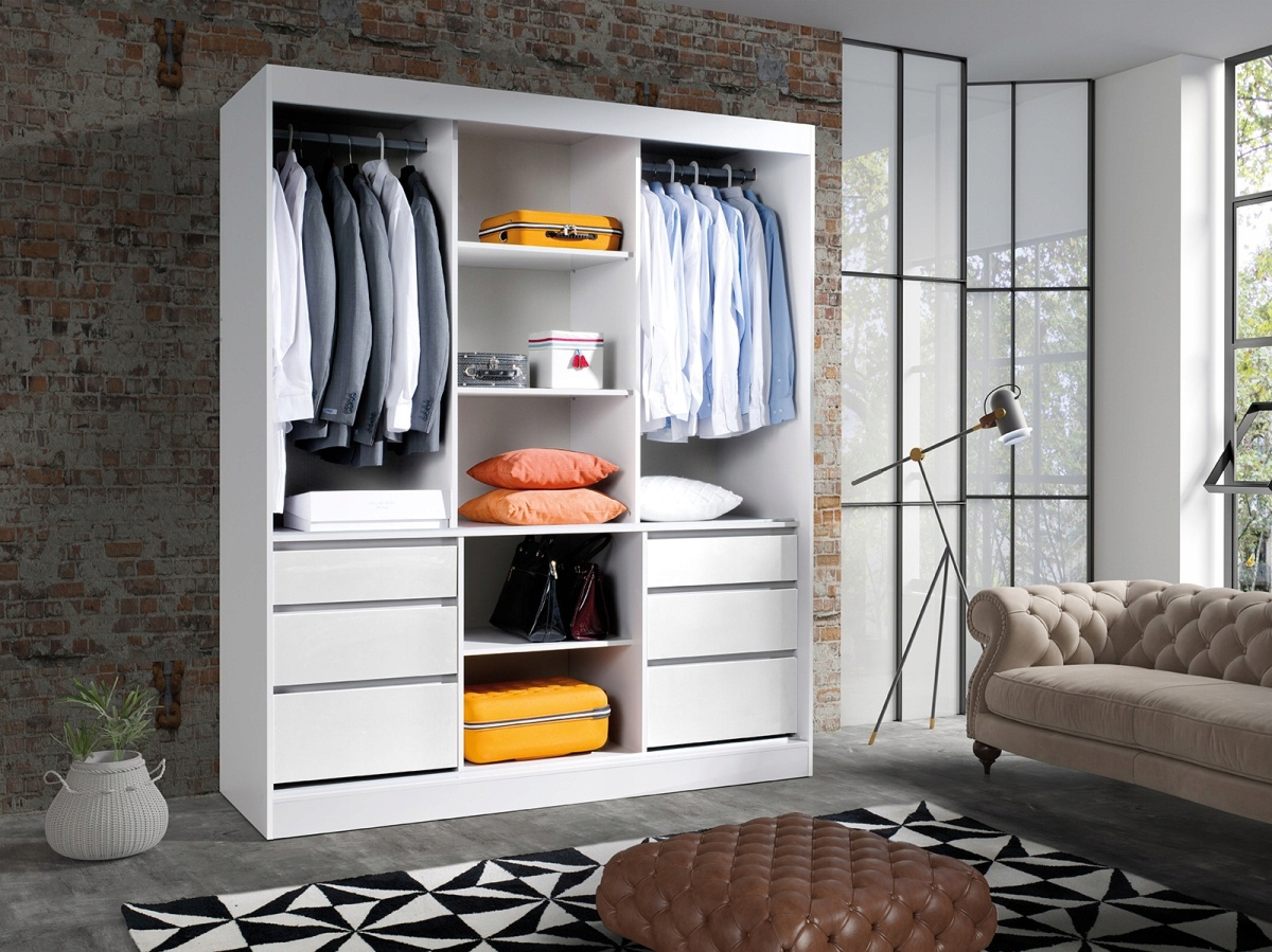Szafa przesuwna HAITI 180cm, Szafa z Lustrem Biała, Szuflady