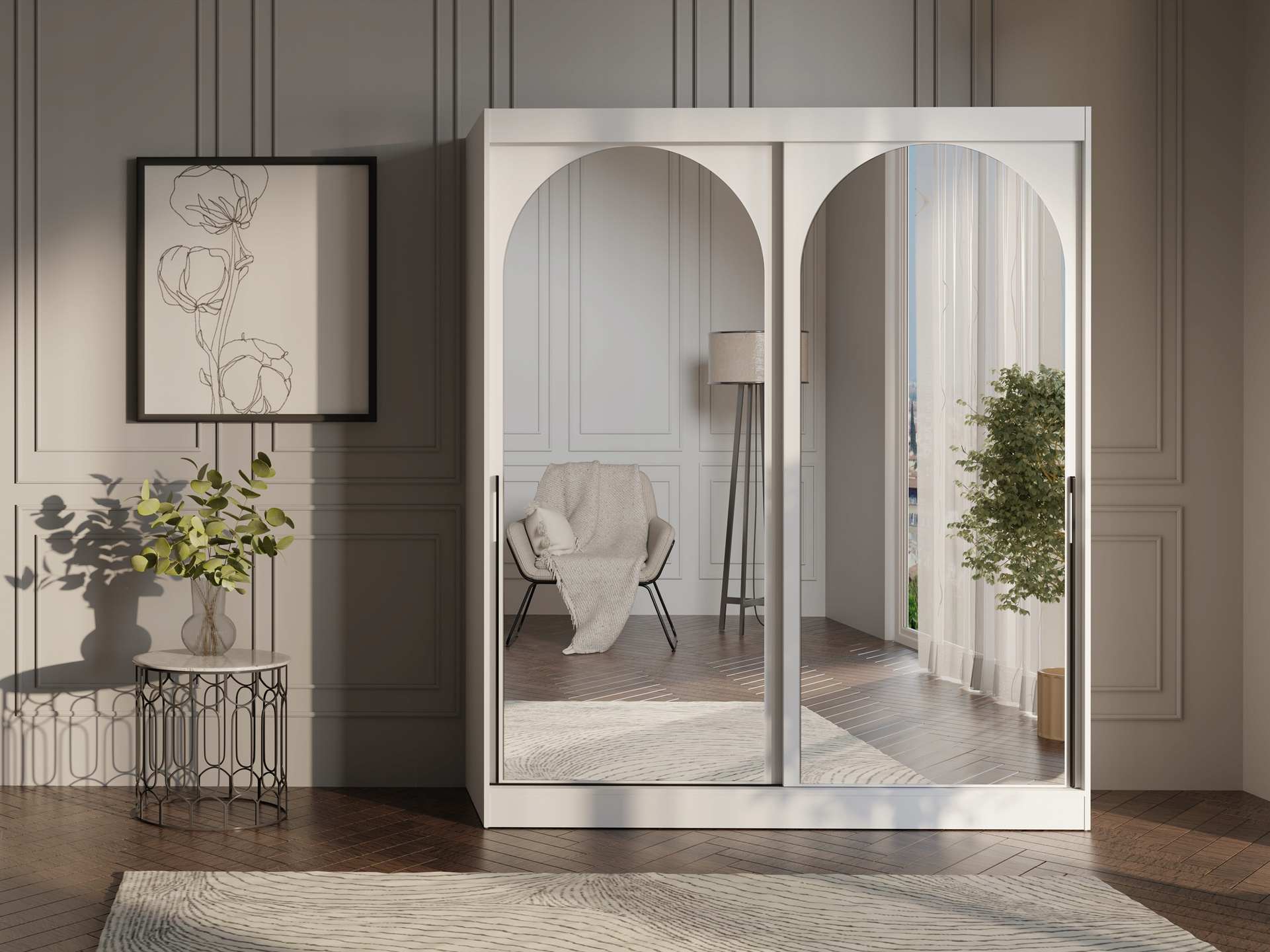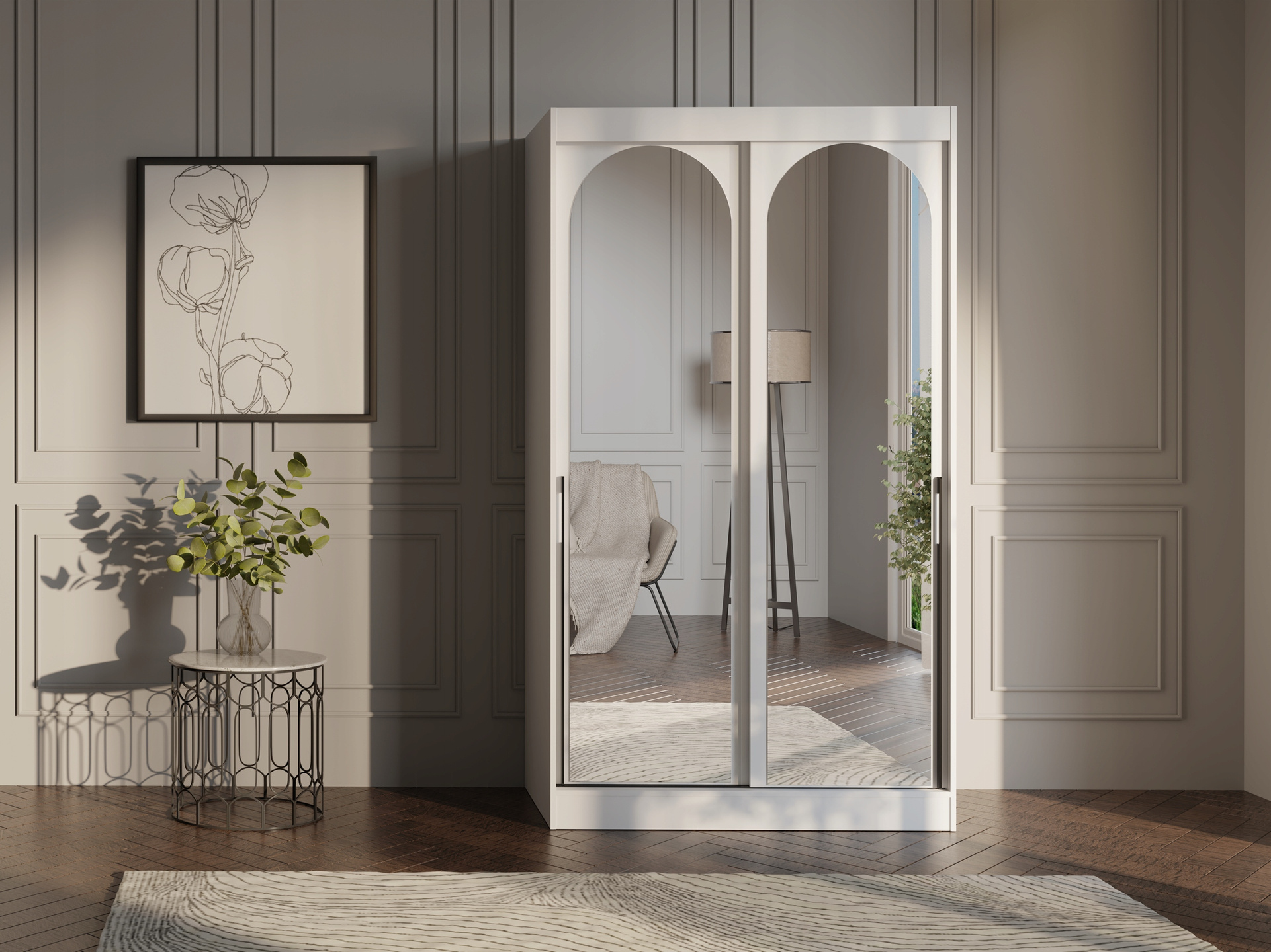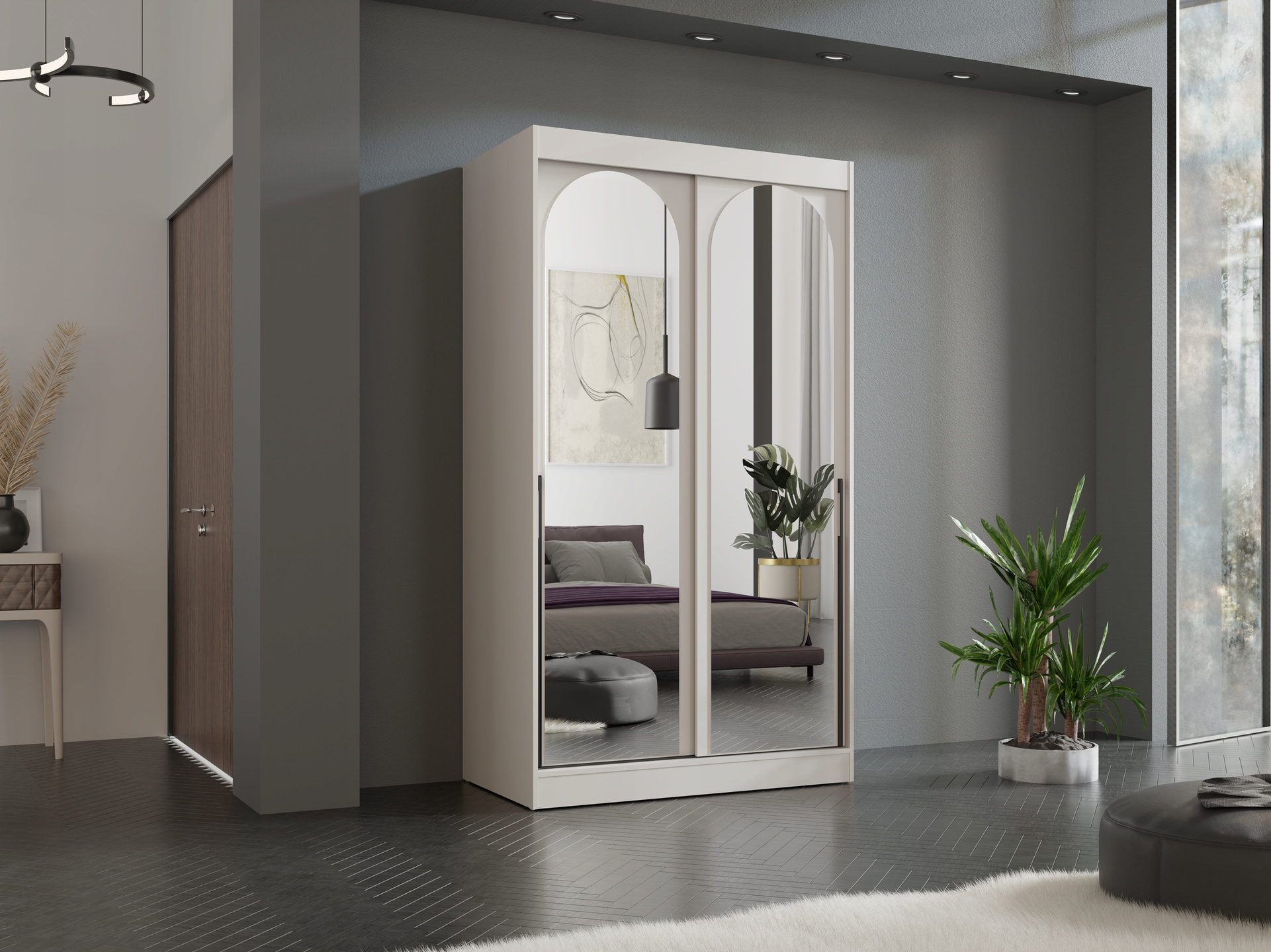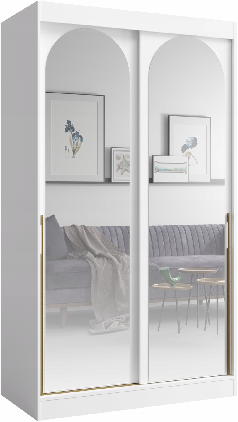 Szafa przesuwna MODIN 120cm, Szafa z Lustrem Biała
