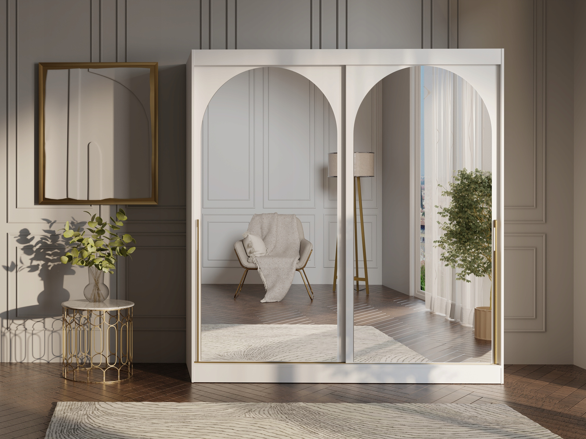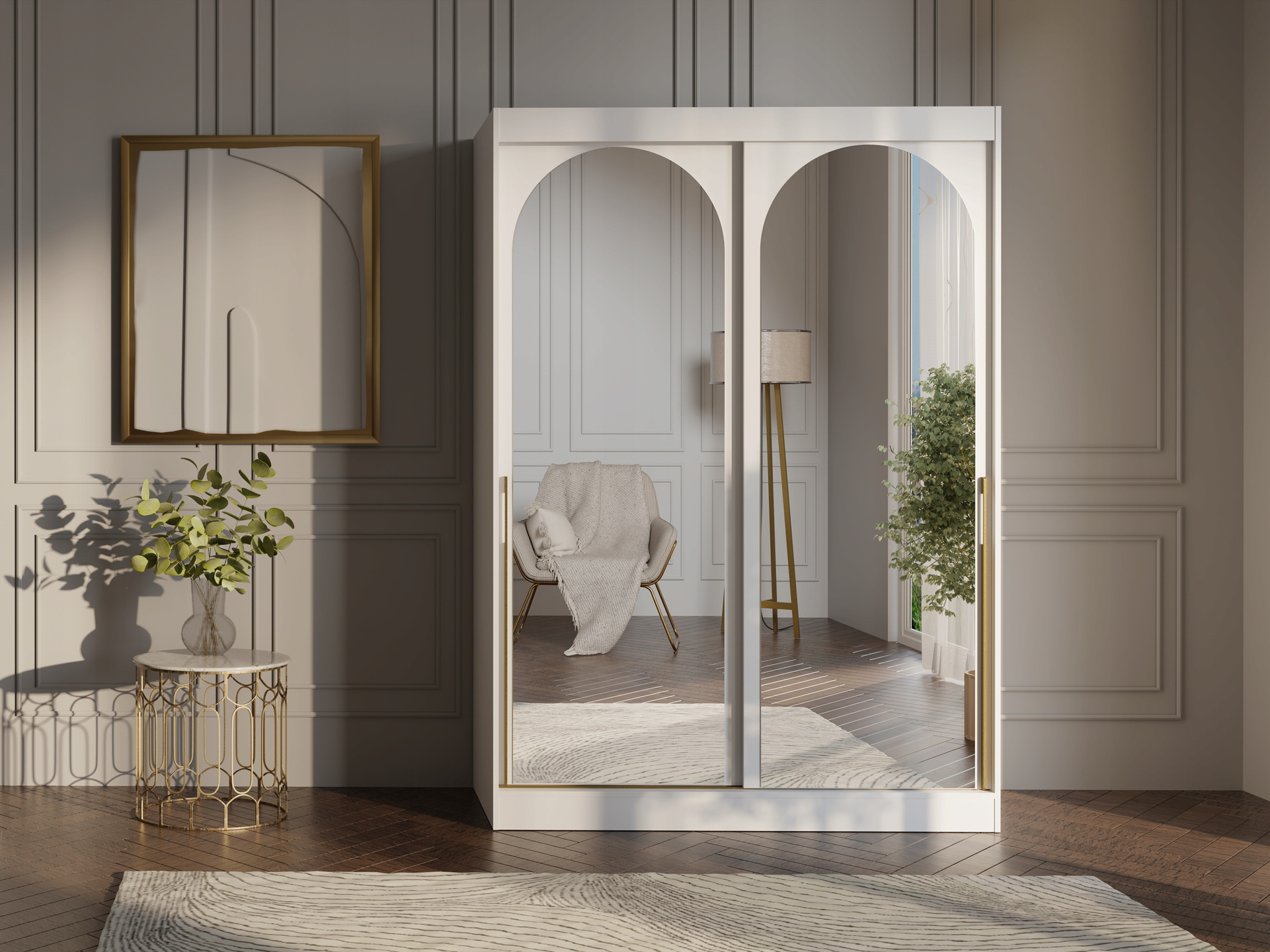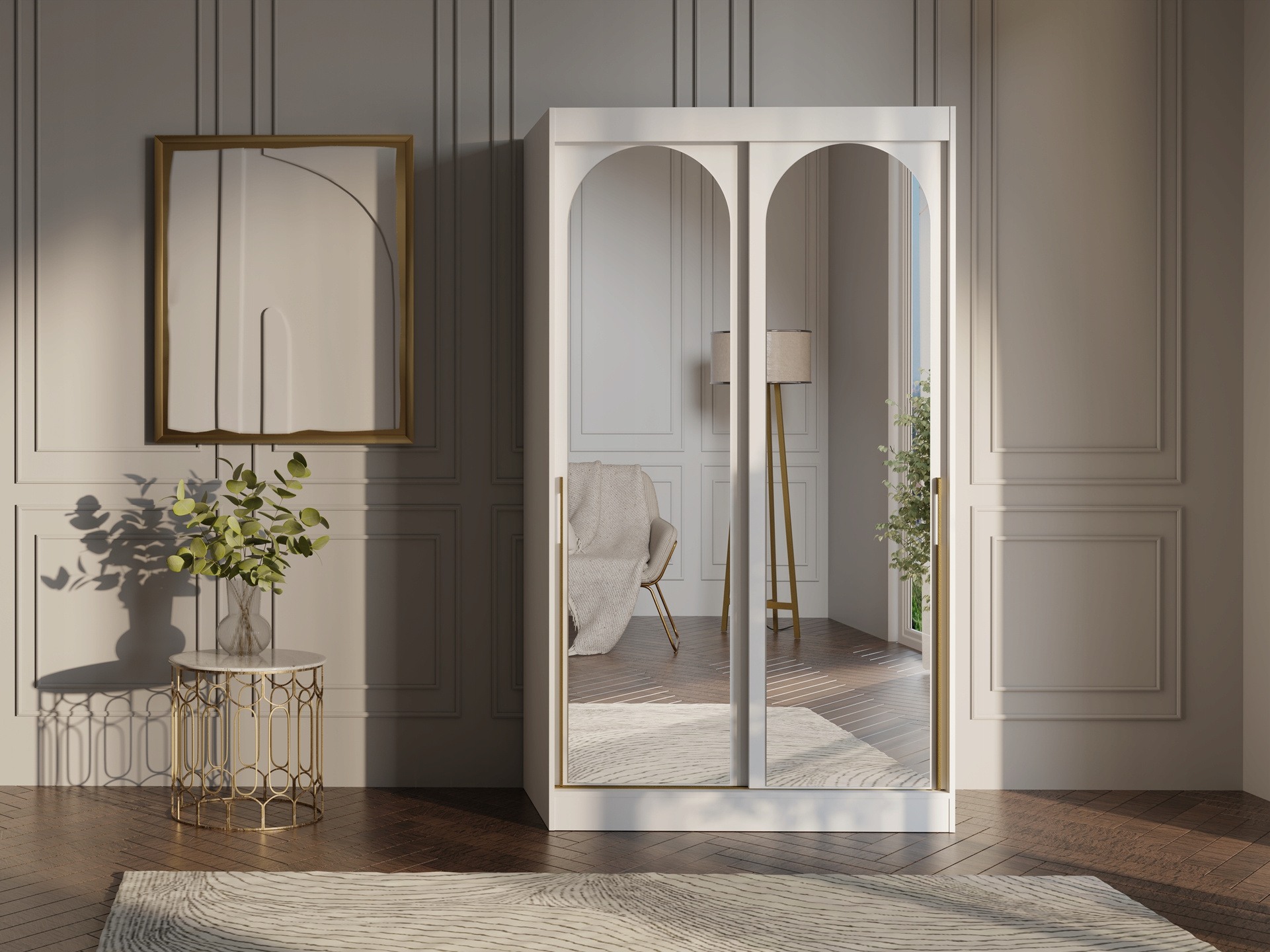 Szafa przesuwna MODIN 120cm, Szafa z Lustrem Biała